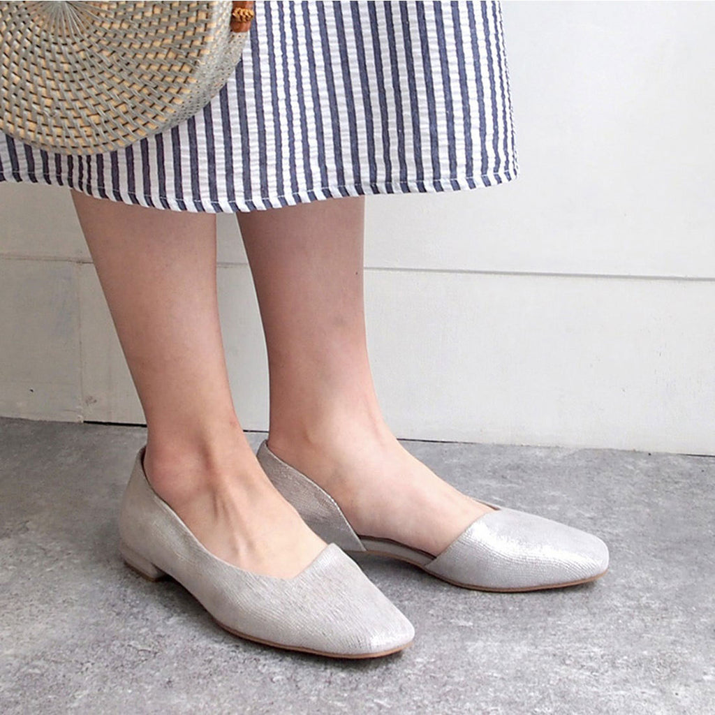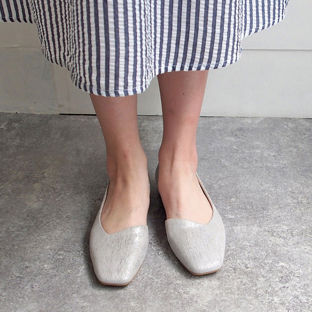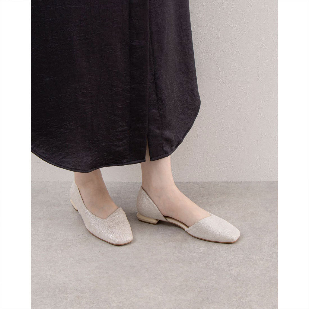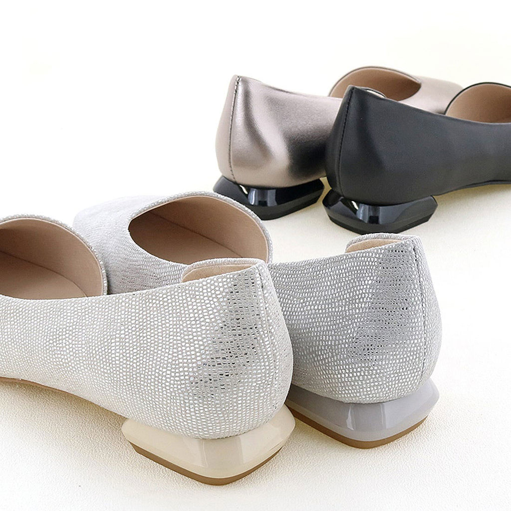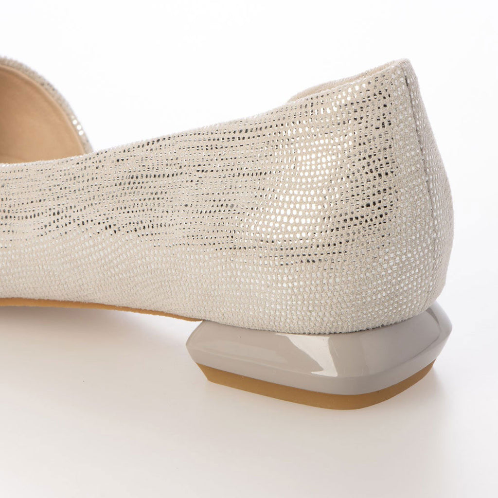 キラッと光るアッパー素材とエナメル塗装されたヒールのコントラストでおしゃれ度アップ。