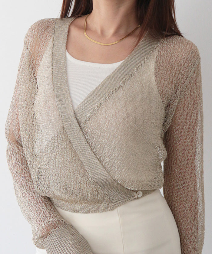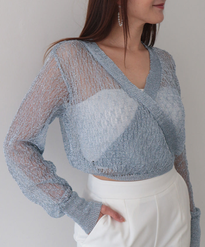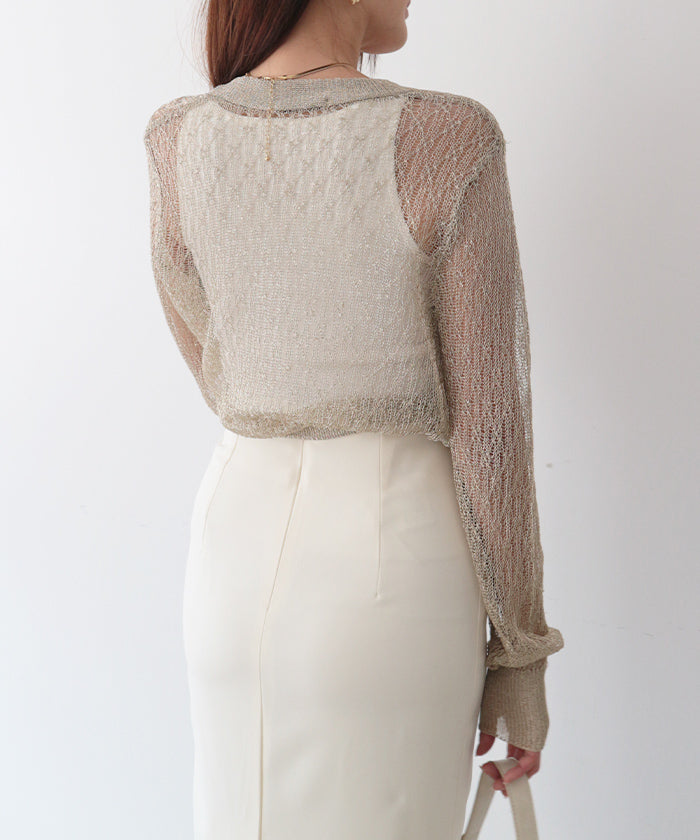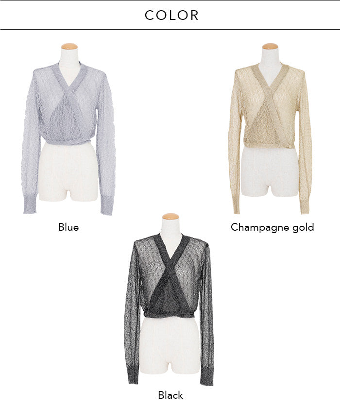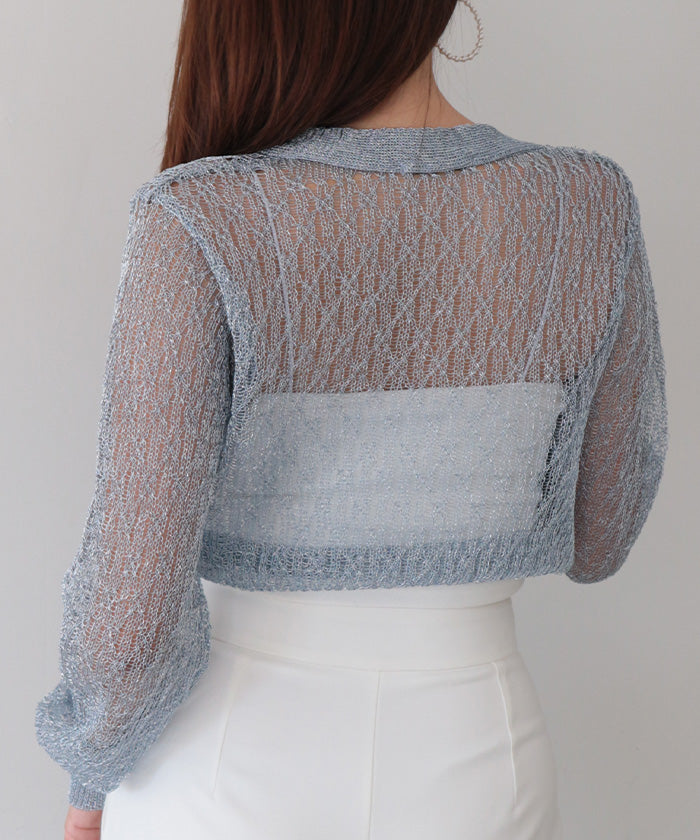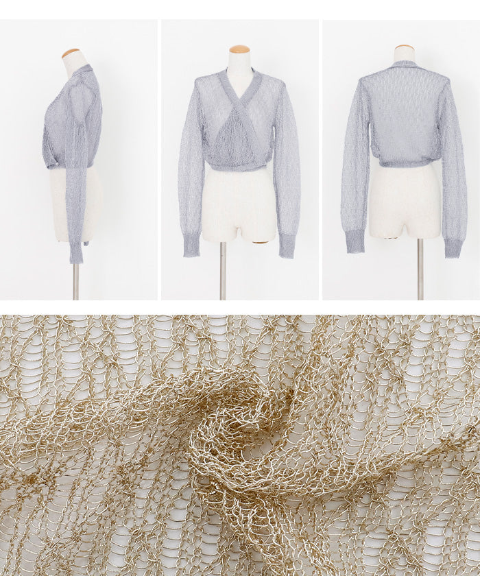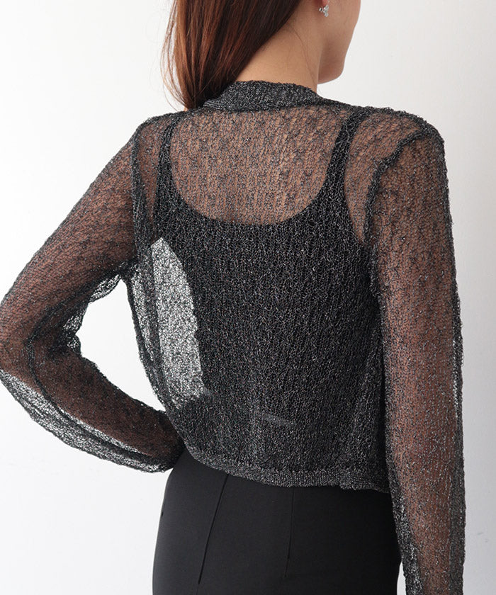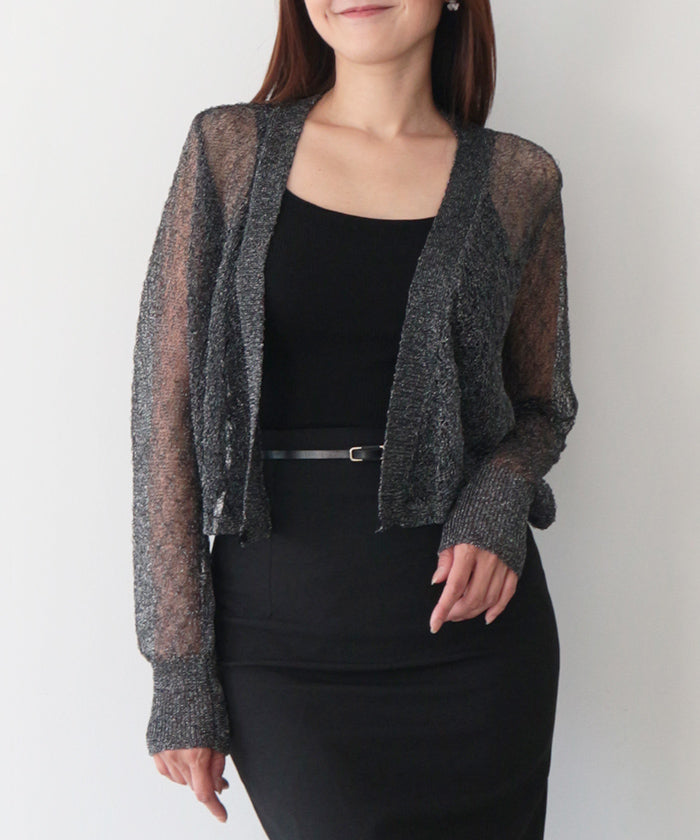 ラメ糸で仕上げた透かし編みがとても美しく、上質な雰囲気を演出します。