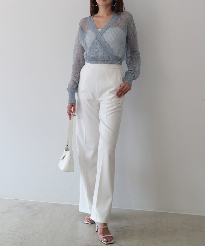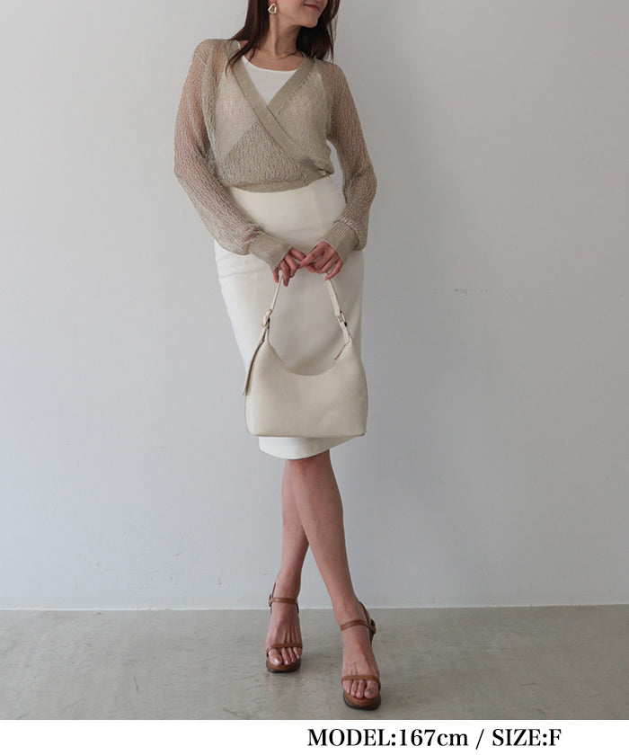 すっきりとしたサイズ感でカシュクールトップスとしても、