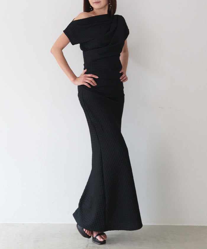 肌見せとアシンメトリーなシルエットバランスが魅力的なアイテムは、