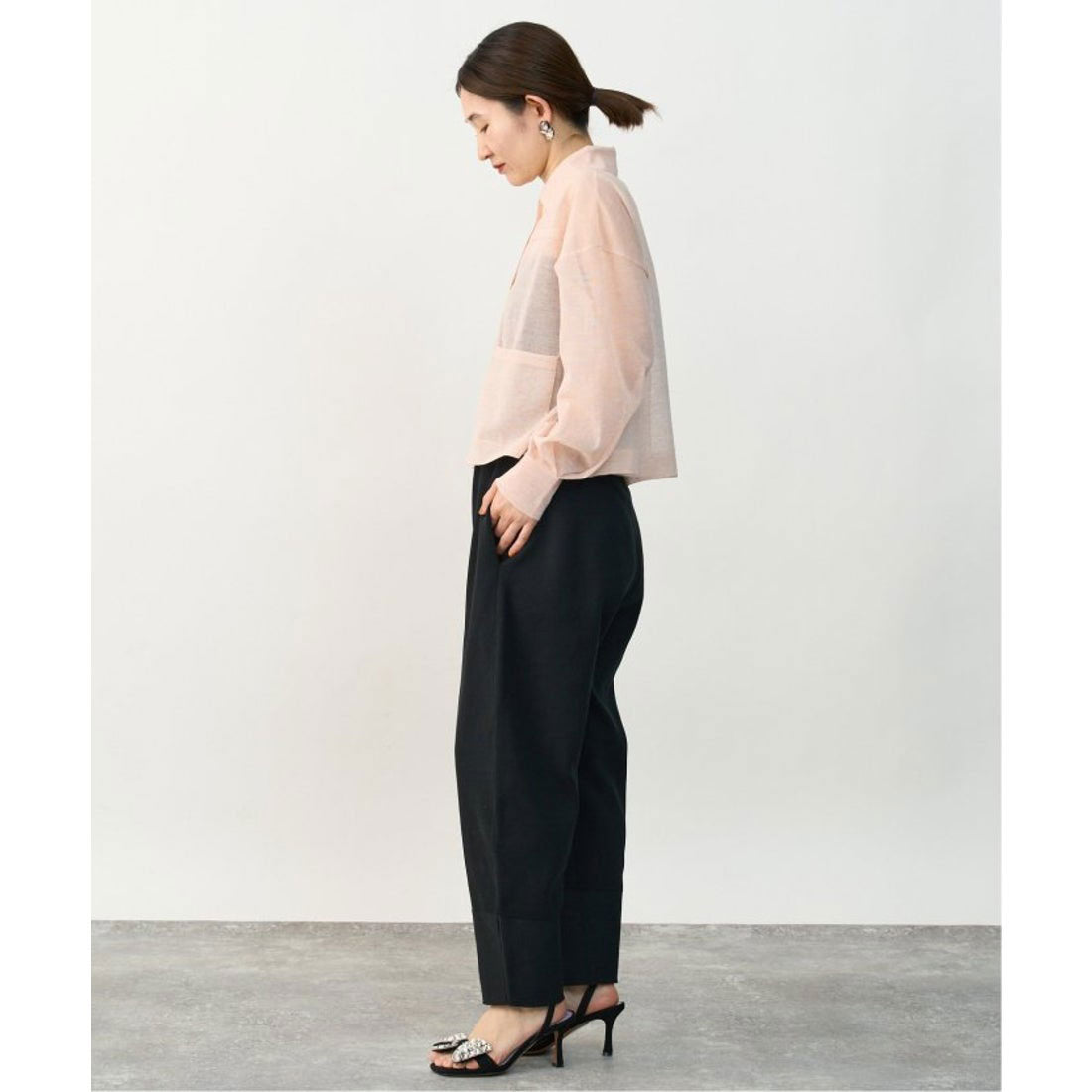 サイズ感:身頃は泳ぎ、腰に軽くかかる着丈感。