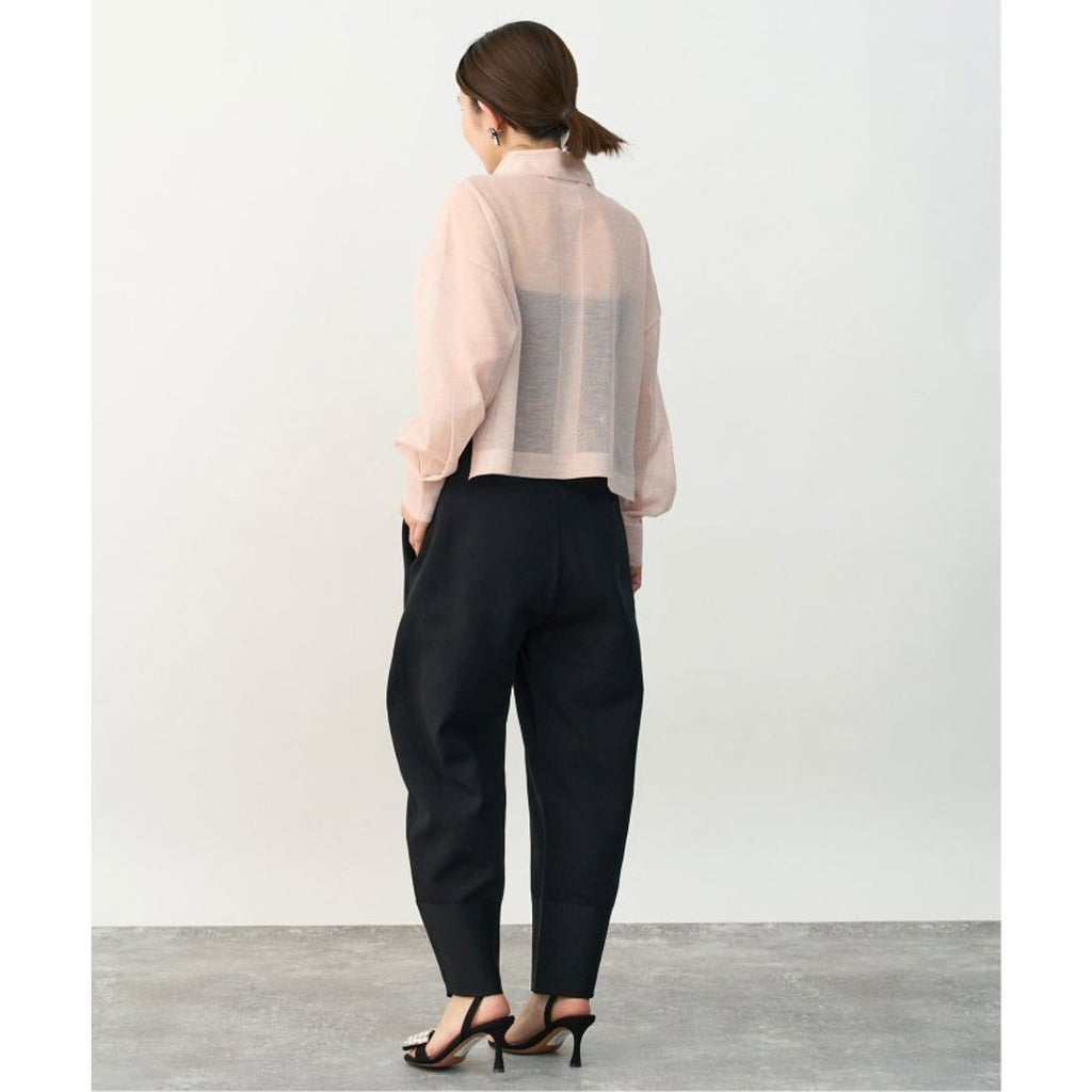 ニットならではな伸びやかな着心地や、袖のタックやサイドスリットもポイント。