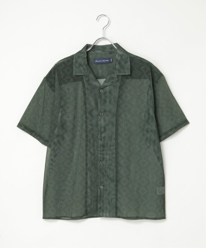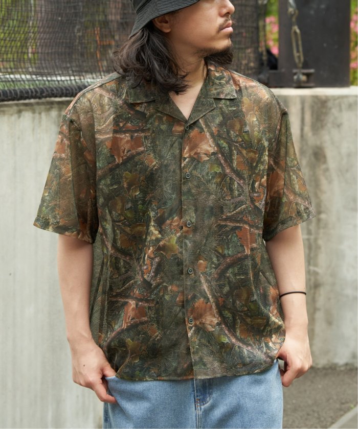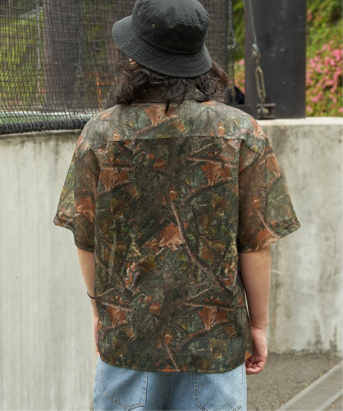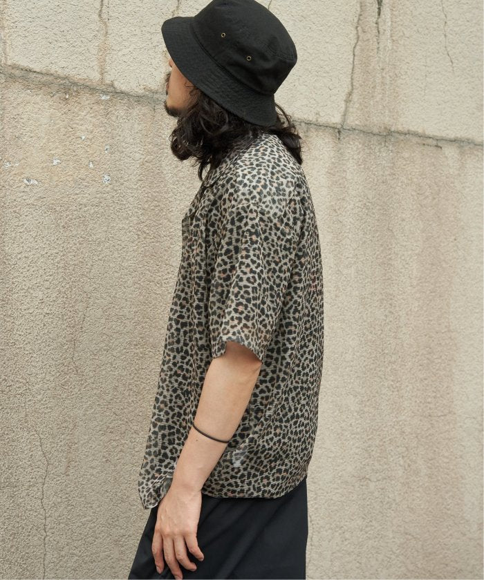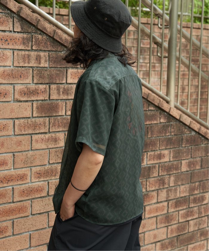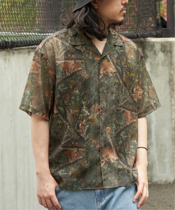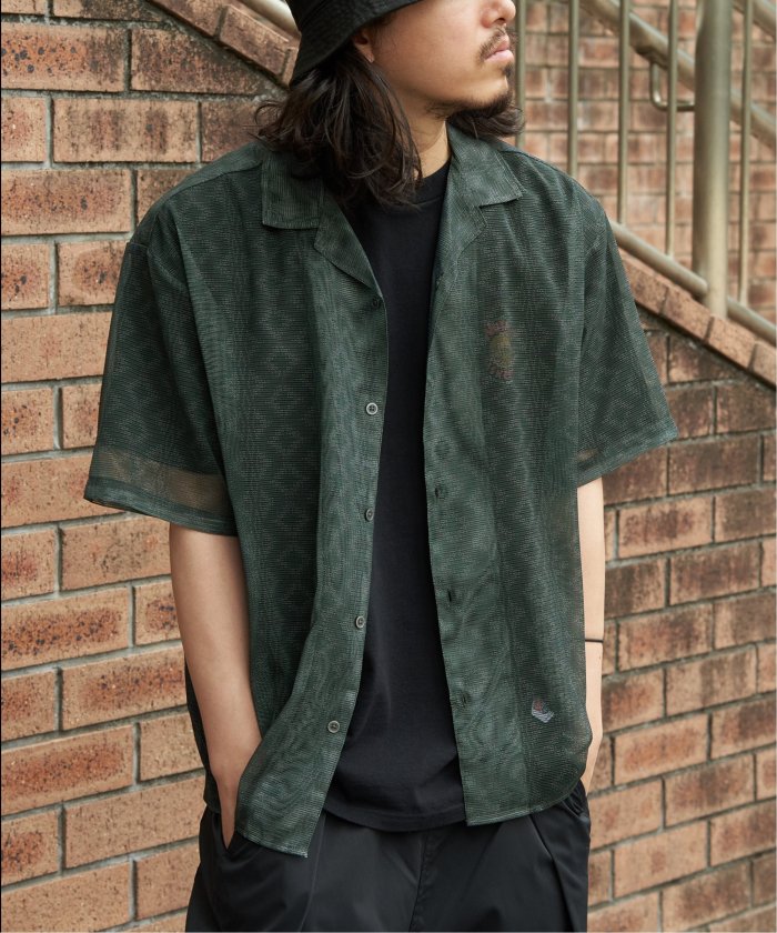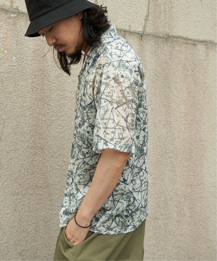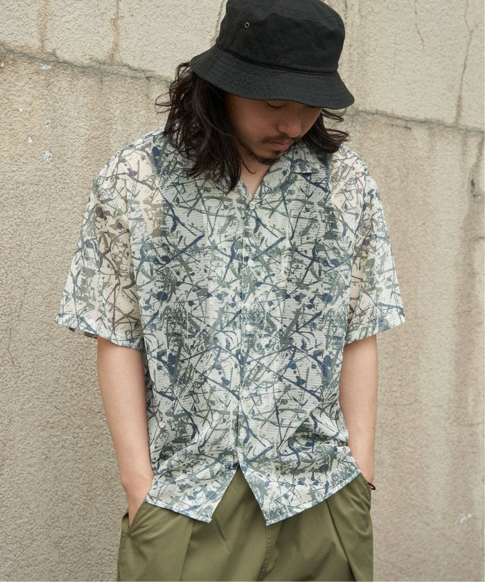 通気性のよい軽やかなメッシュ素材を使った、総柄の半袖シャツ。