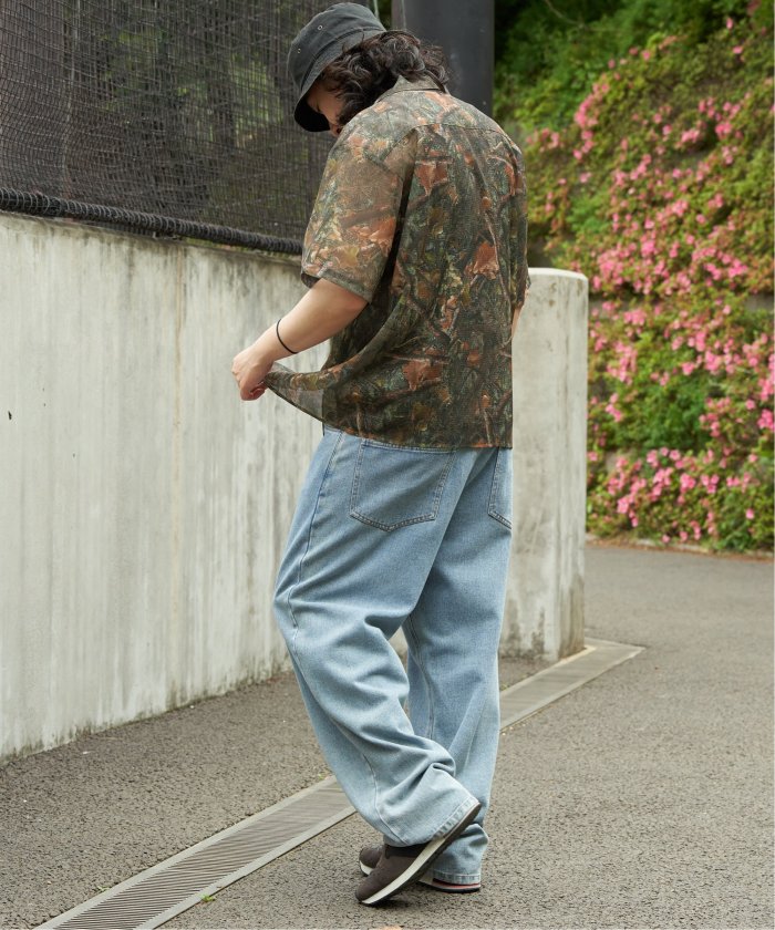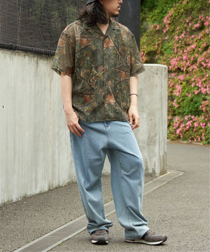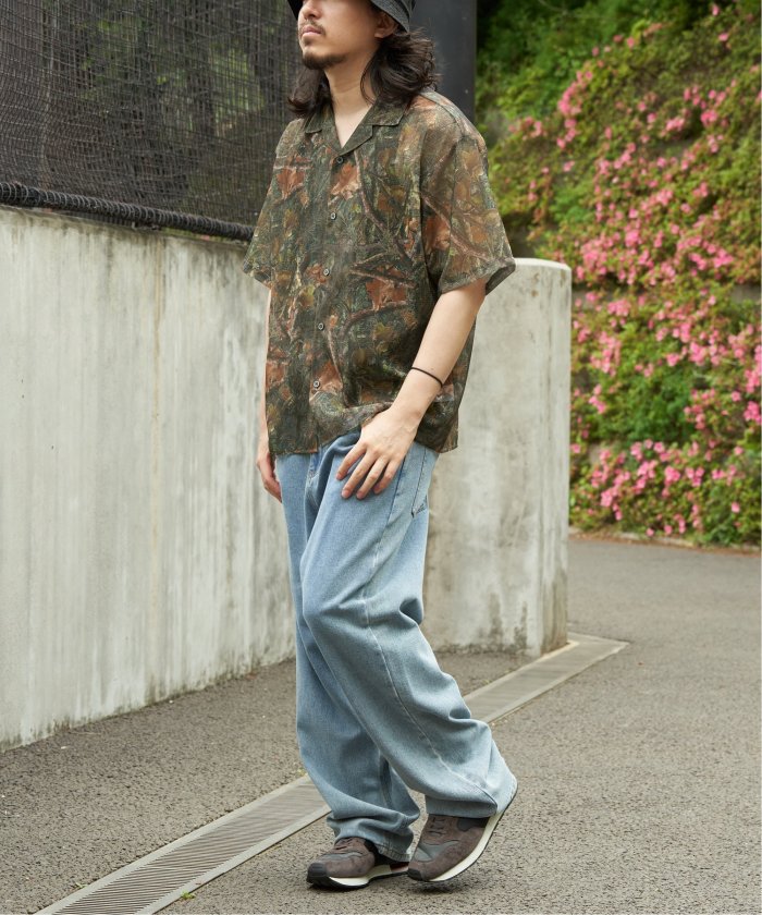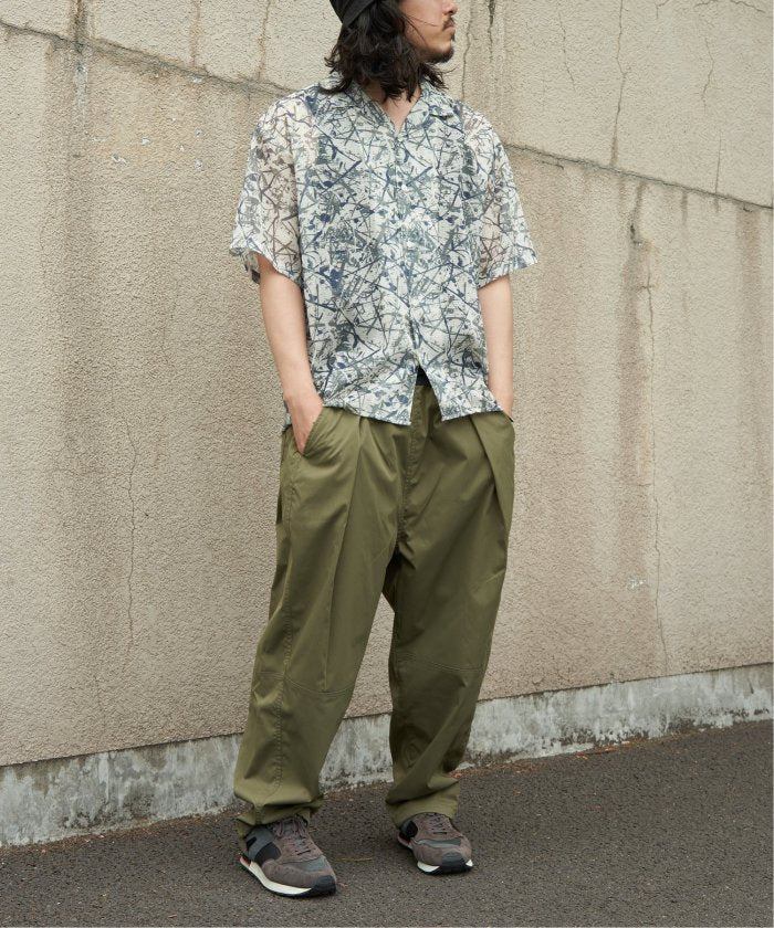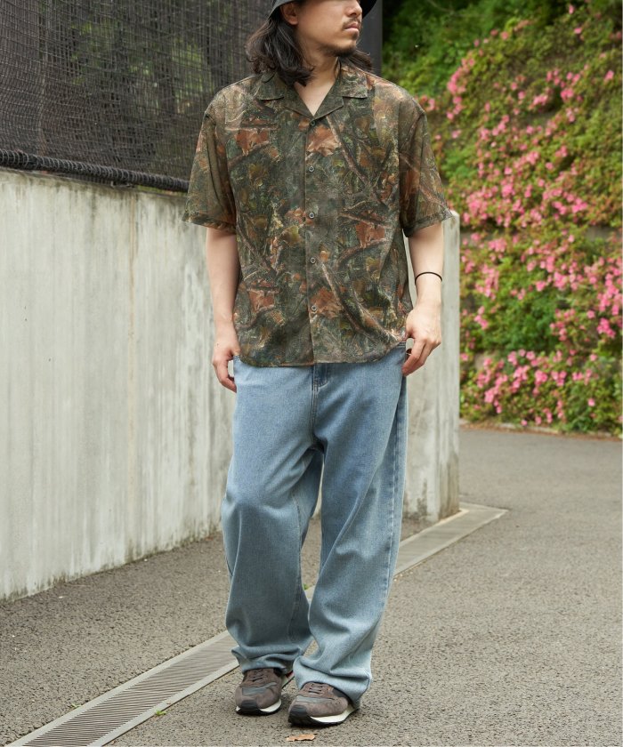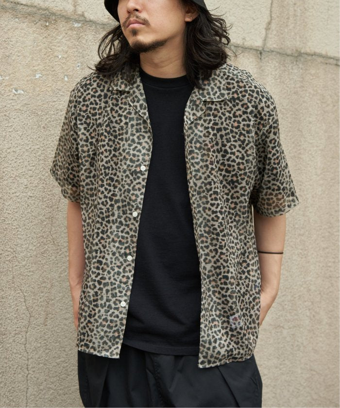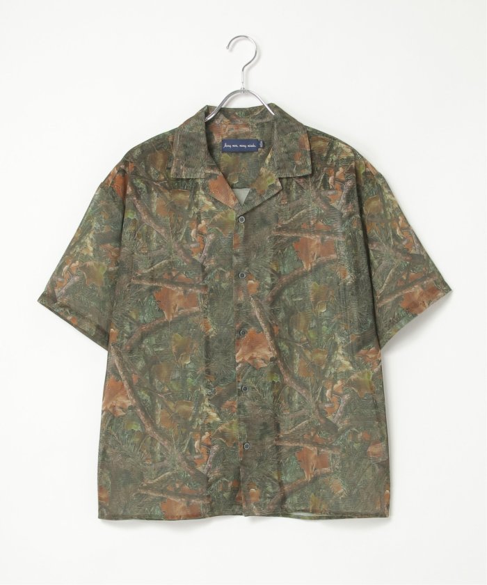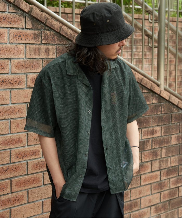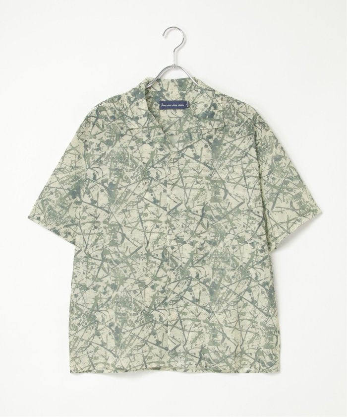 通気性のよい軽やかなメッシュ素材を使った、総柄の半袖シャツ。