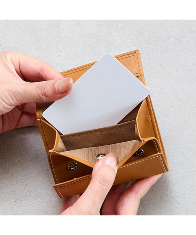内部にはカードポケットが5つ、小銭入れとお札入れを装備。お札は折らずにそのまま収納でき、小銭入れは横マチ付きで開きやすく、中身の確認もしやすい構造です。重さは約70gと非常に軽量で、ポケットにもバッグにもすっきり収まるミニ財布は、ユニセックスに使えるアイテムとしても人気です。