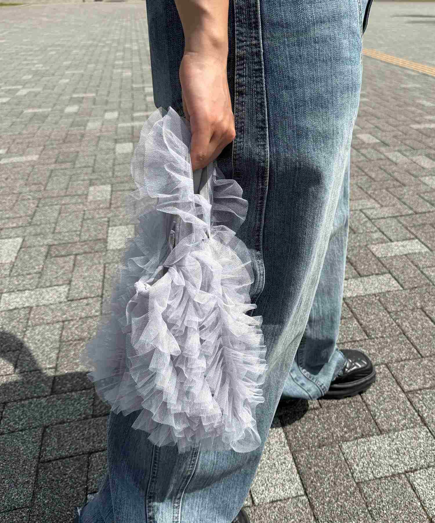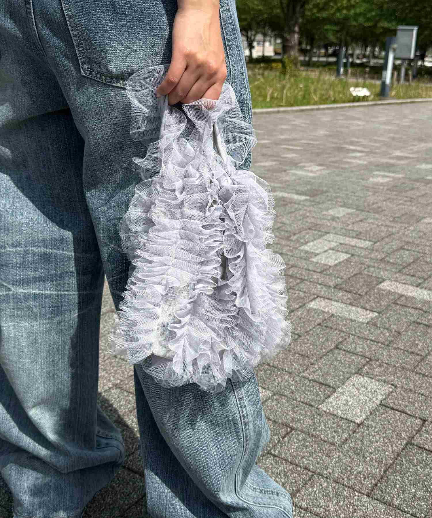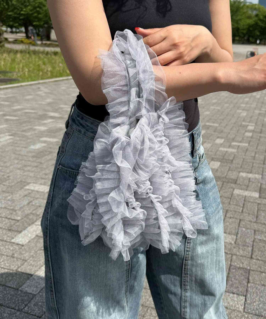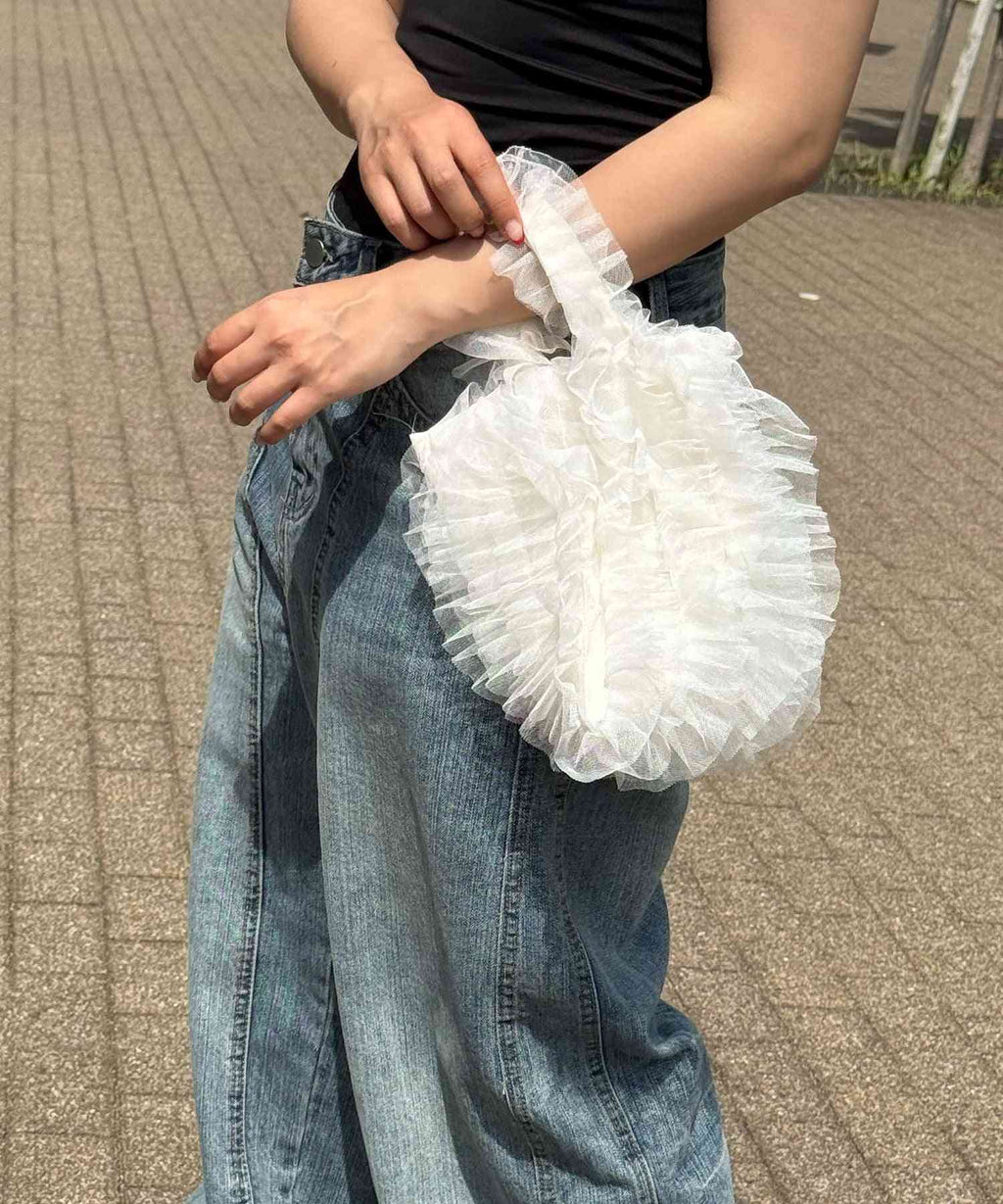 立体的なチュールフリルをたっぷりあしらった、トレンド感あふれるキャミバッグ。