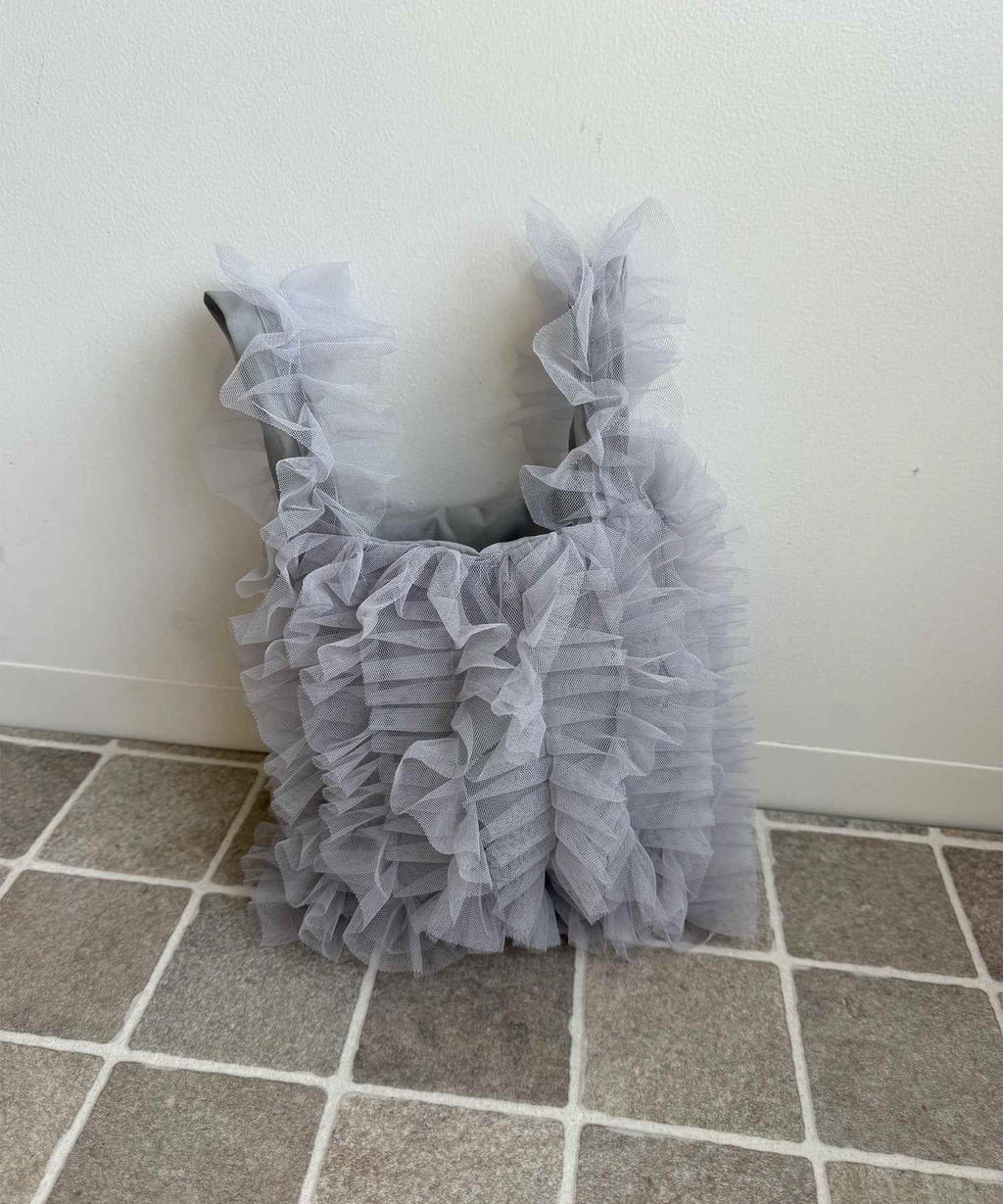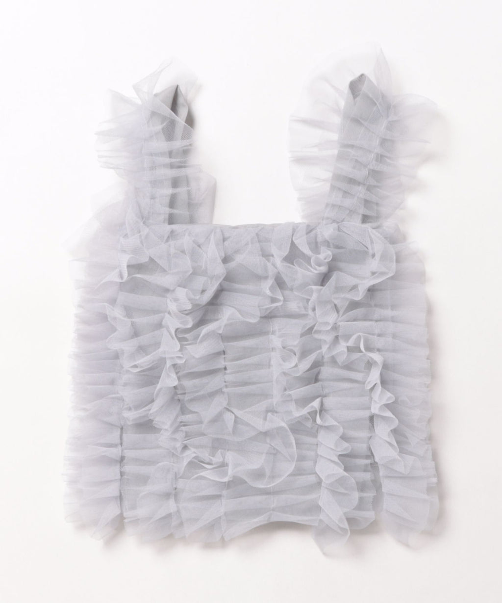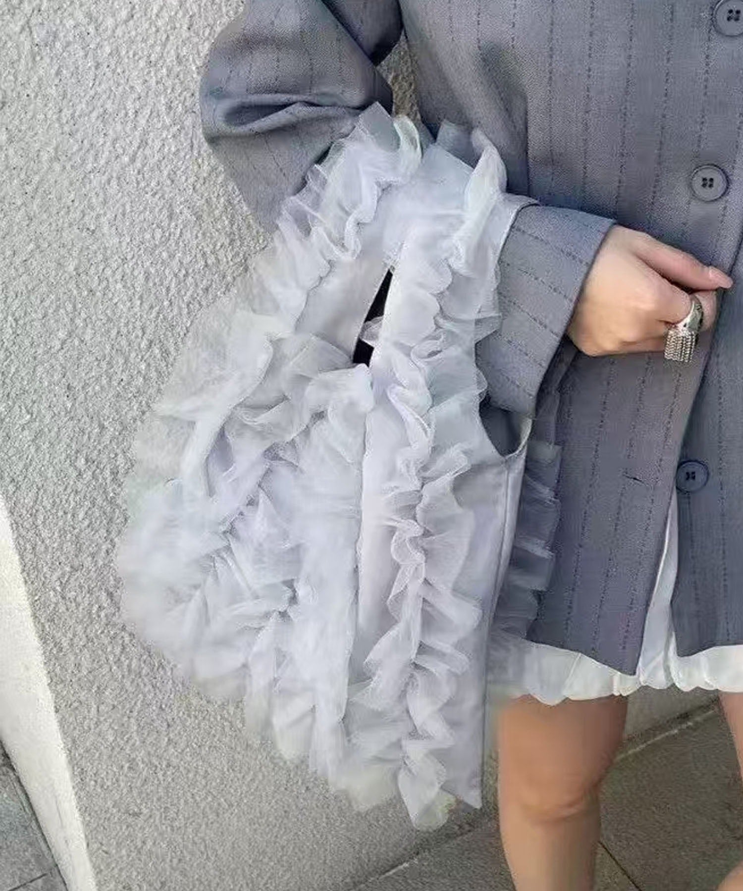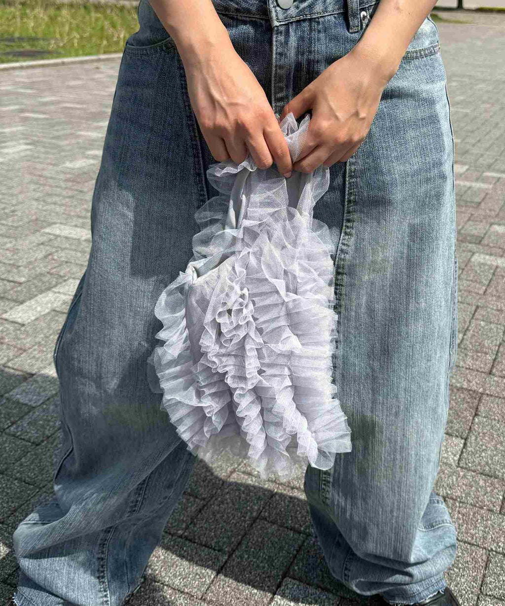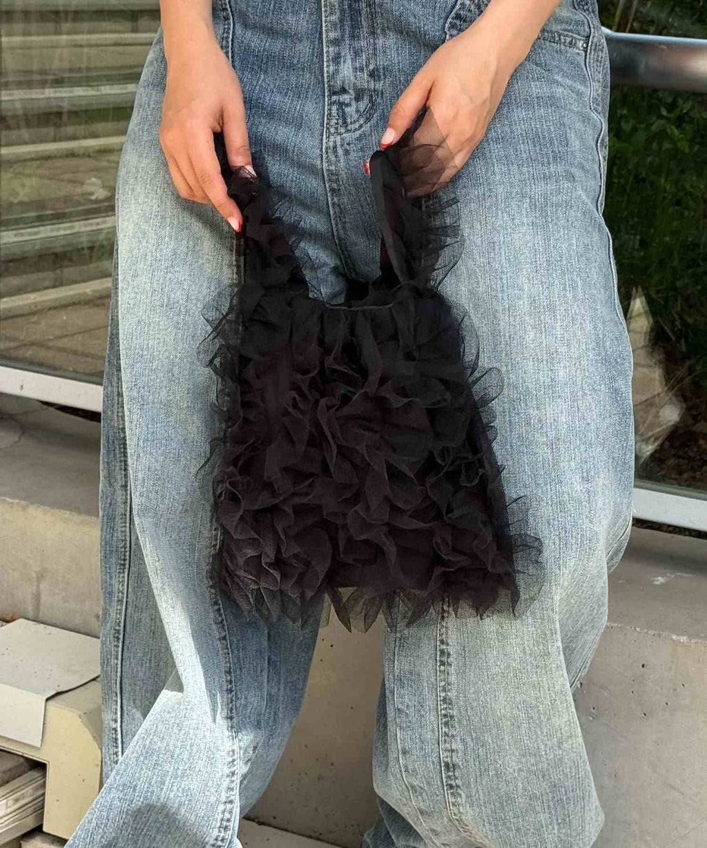 立体的なチュールフリルをたっぷりあしらった、トレンド感あふれるキャミバッグ。