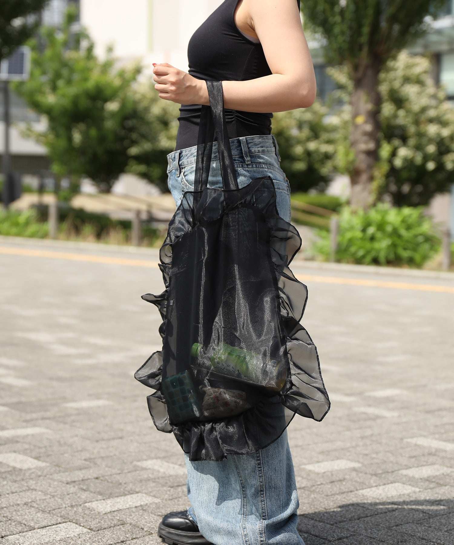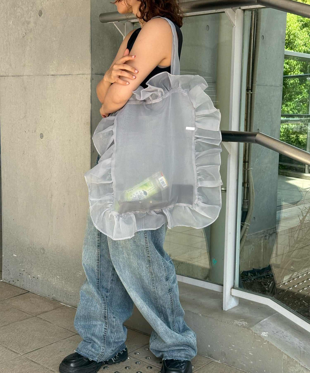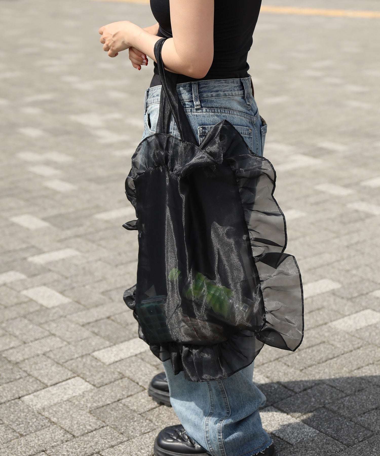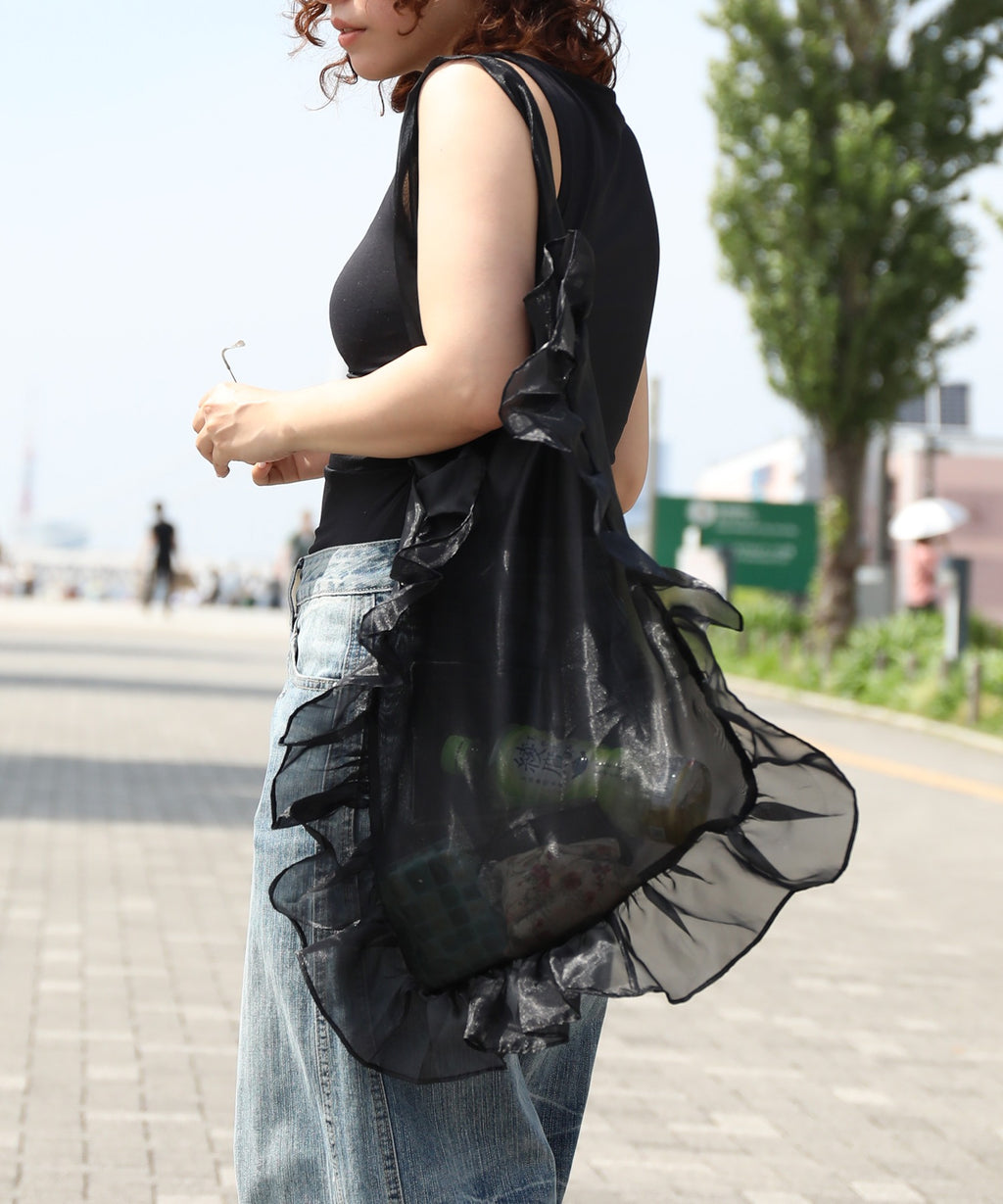 ふんわり軽やかなオーガンジー素材に、たっぷりのフリルをあしらったシアートートバッグ。