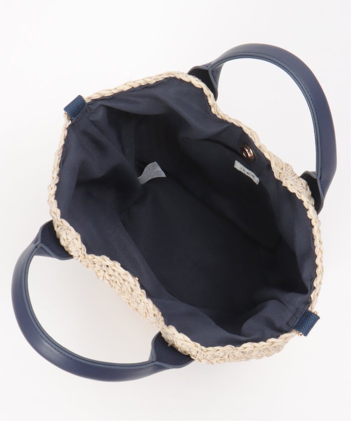 配色の持ち手は、ハンドルをフェイクレザーにすることでリゾート感が出すぎず、タウンユースしやすくしています。