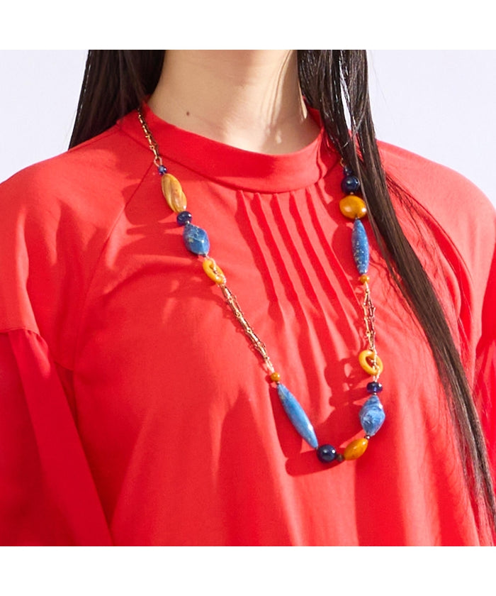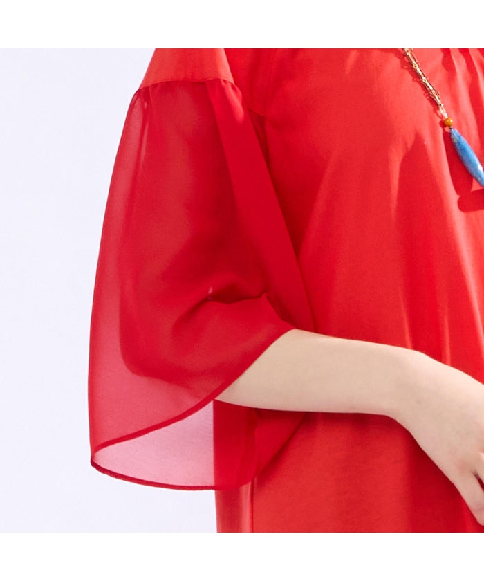 袖部分に柔らかで透け感のあるジョーゼット素材を使用。軽やかな雰囲気をお楽しみください。