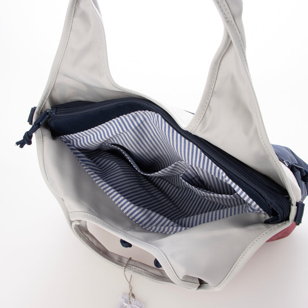柔らかなフォルムと切り替えデザインが魅力のショルダーバッグ。