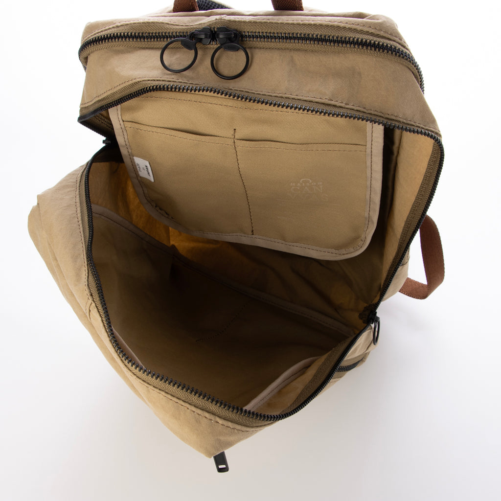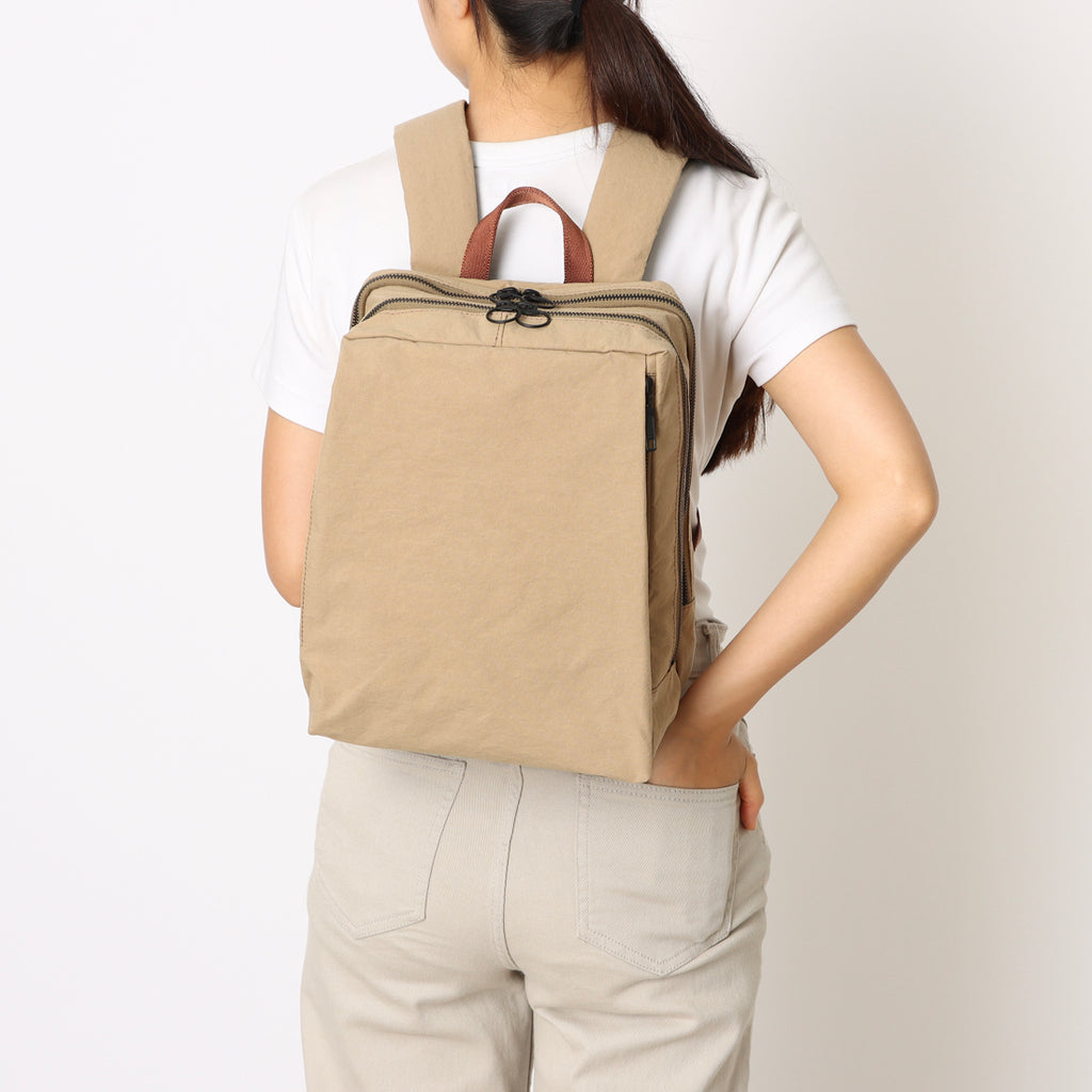 シンプルなデザインに機能性を備えたスクエア型バックパック。