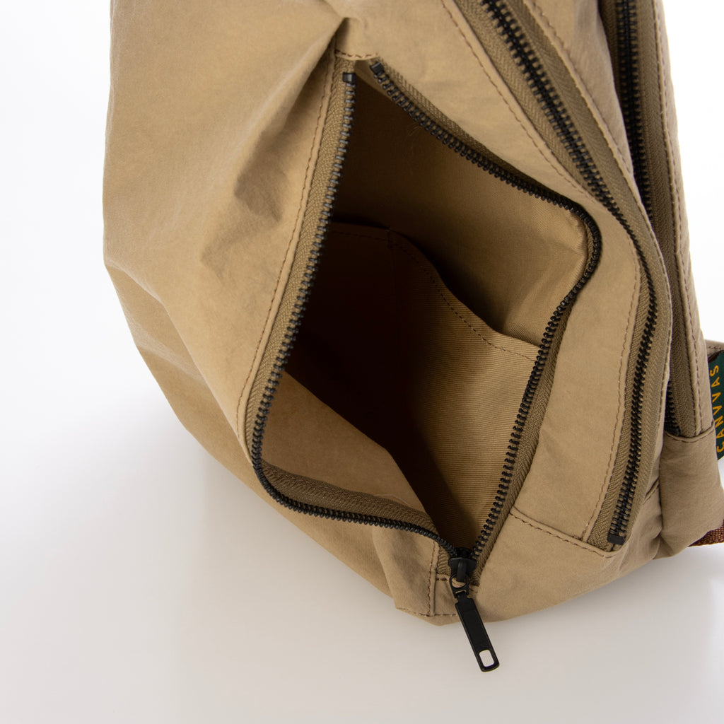 大きく開くダブルジップ仕様で荷物の出し入れがスムーズ。