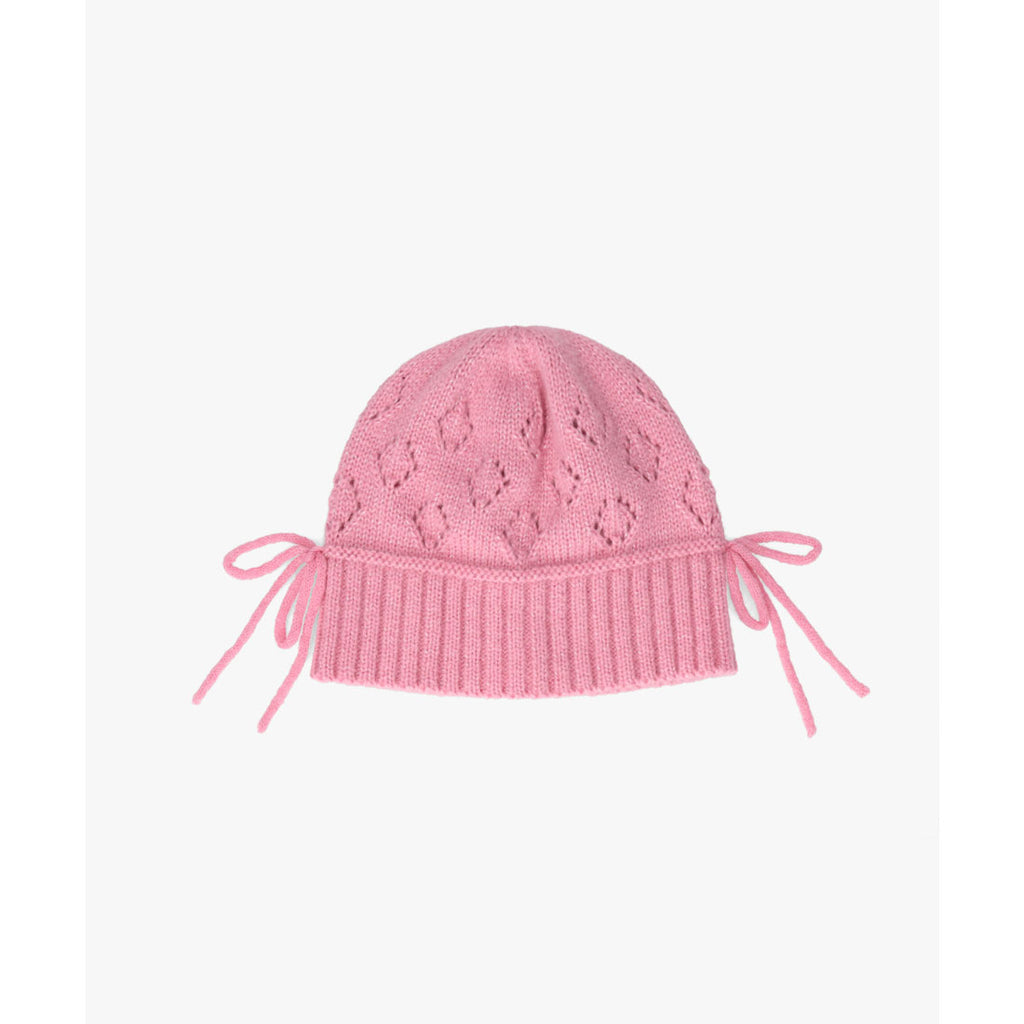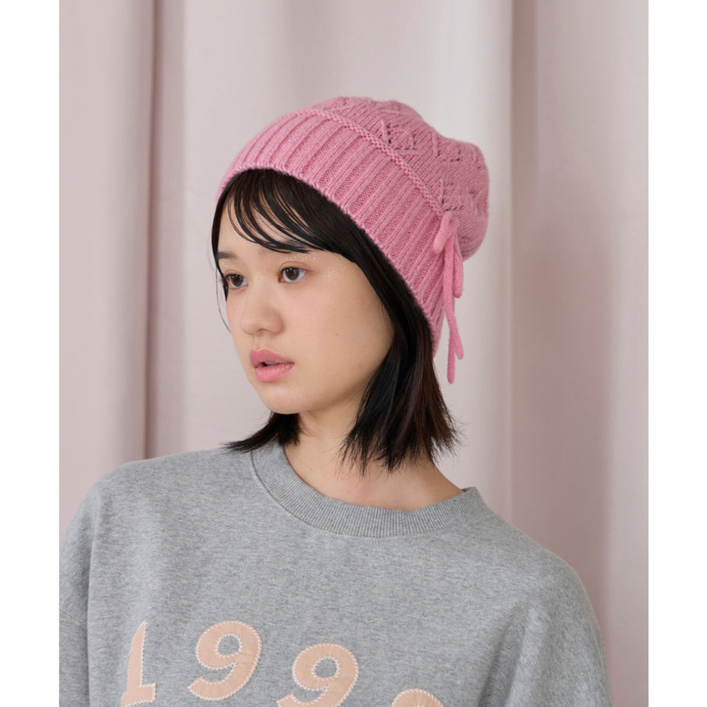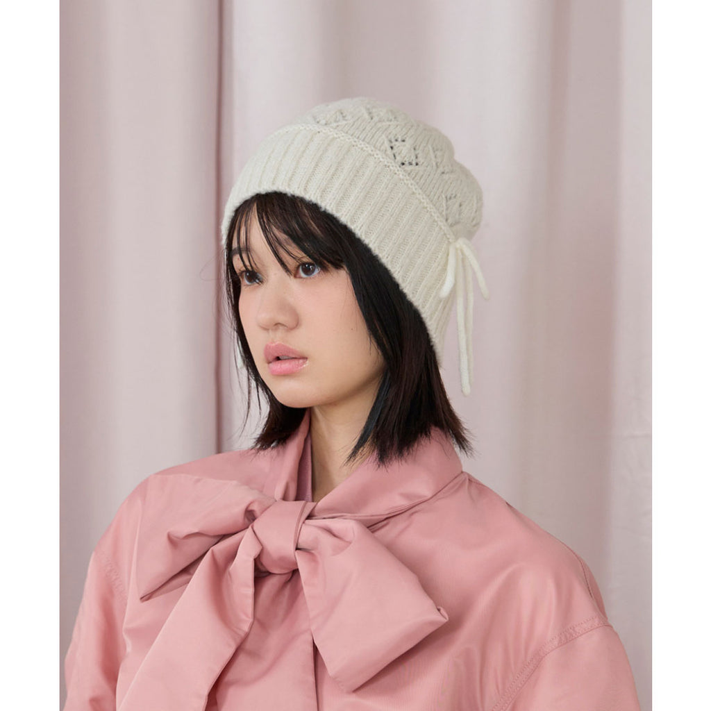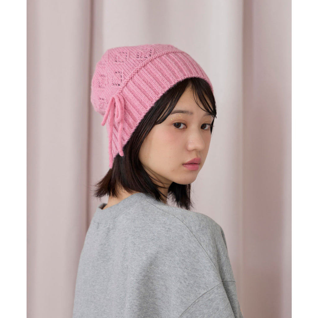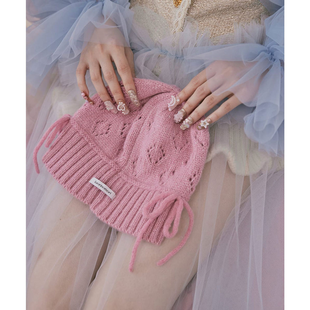 ガーリーなアクセントが光る 大人かわいいニットビーニー