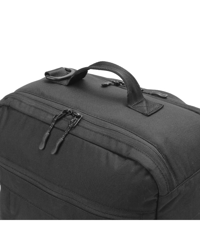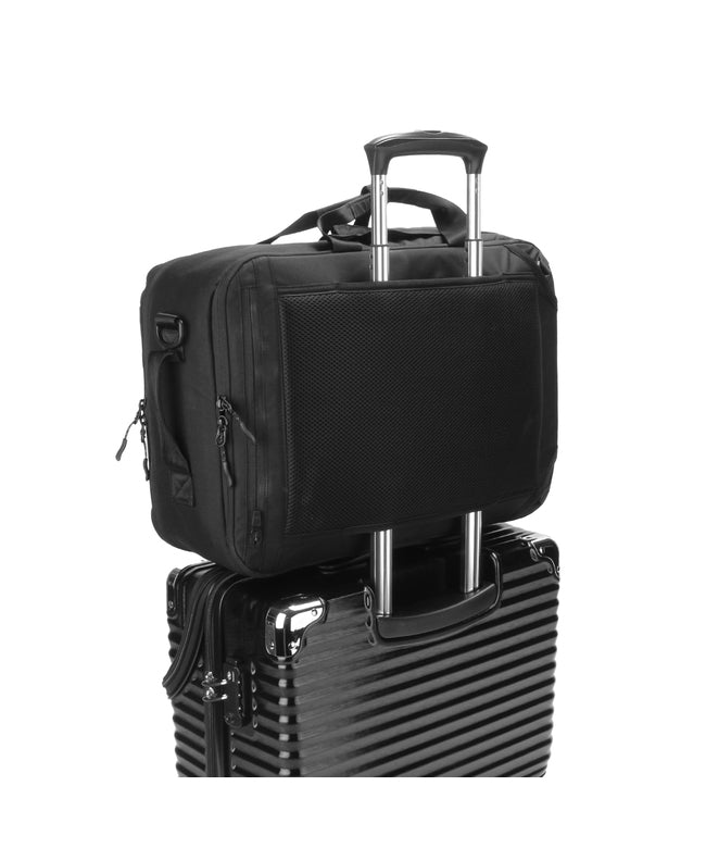 こちらはハンドバッグ、ショルダーバッグ、バックパックと、3通りの使い分けができる3WAYビジネスバッグ。表地に合わせてファスナーもPFASフリーに変更しています。その他、ストラップ紛失防止も兼ねてチェストハーネスの仕様を変え、各アジャスターは軽量化。インナーメッシュ素材、キーフックやDリングの形状に至るまで変更し、細かい部分も見直して改良されています。さらにブランドピスネームのデザインも変わりました。
