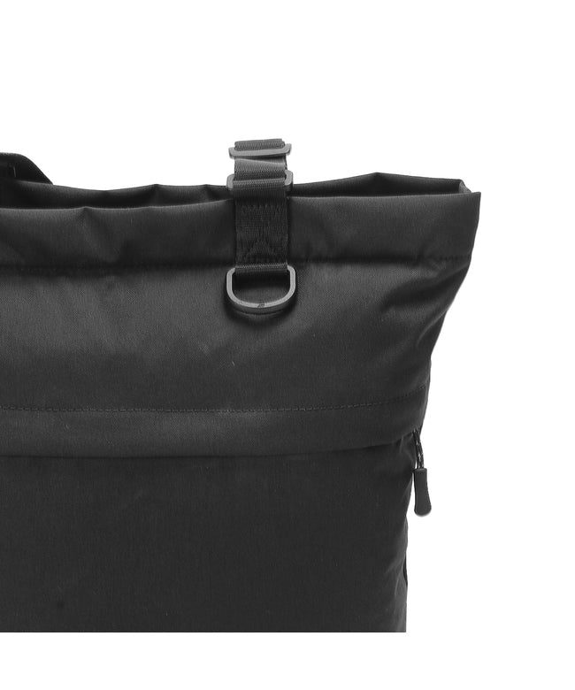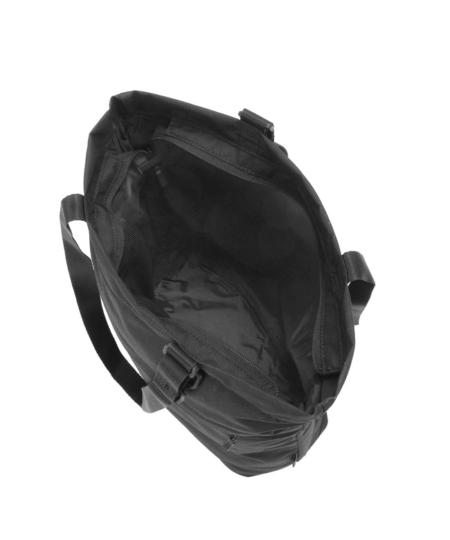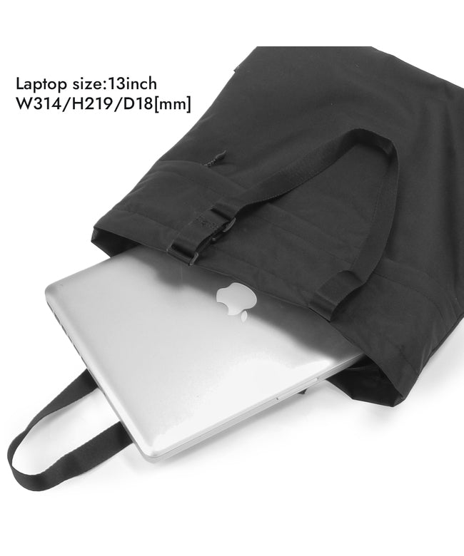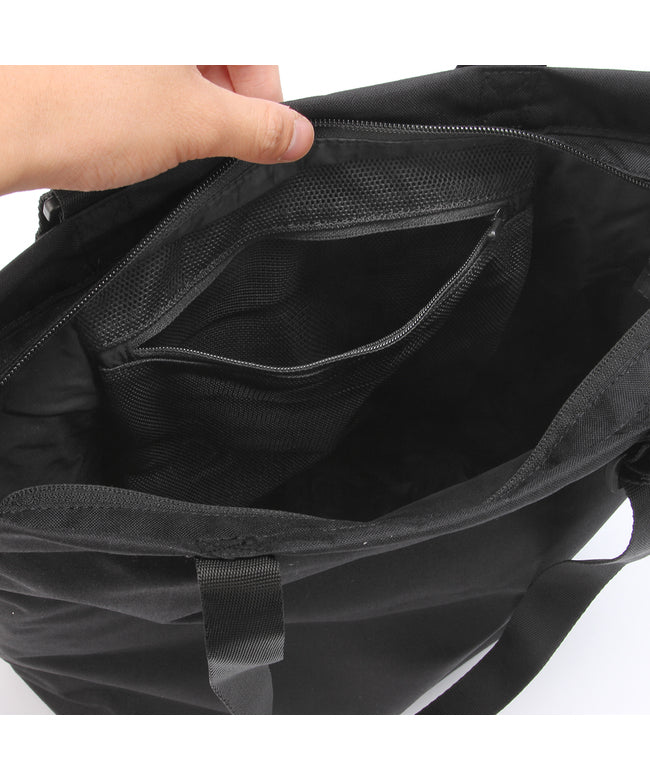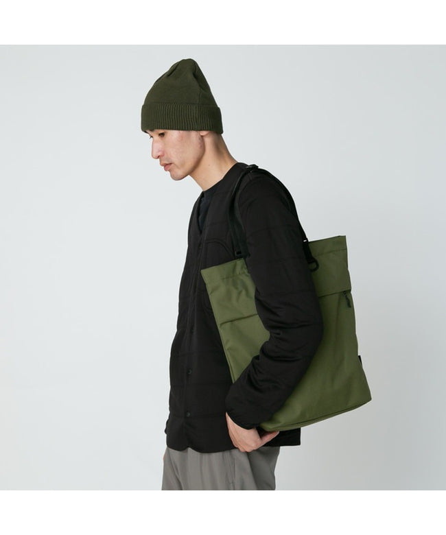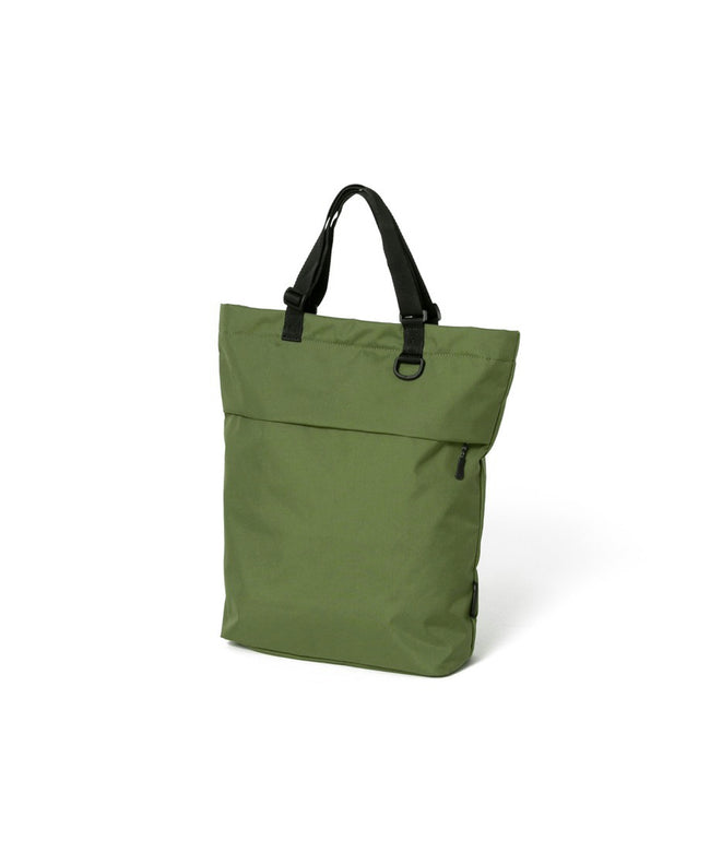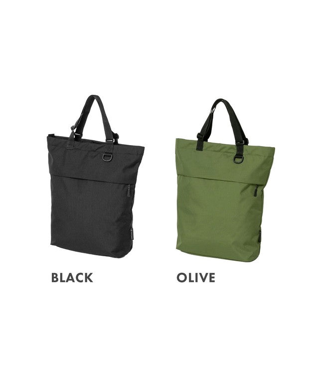 こちらはハンドストラップの長さを調整することで、手提げにも肩掛けトートバッグにもなる2WAY仕様のバッグです。表地に合わせて、ファスナーもPFASフリーに変更しています。また容量を考えてマチを1cm増やし、インナーポケットの大きさも変更。ハンドストラップ、インナーメッシュ素材、Dリングの形状、ブランドピスネームのデザインなど、細かい部分で改良点が見られます。