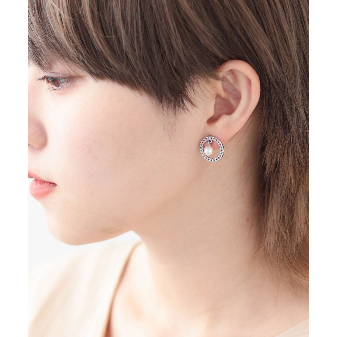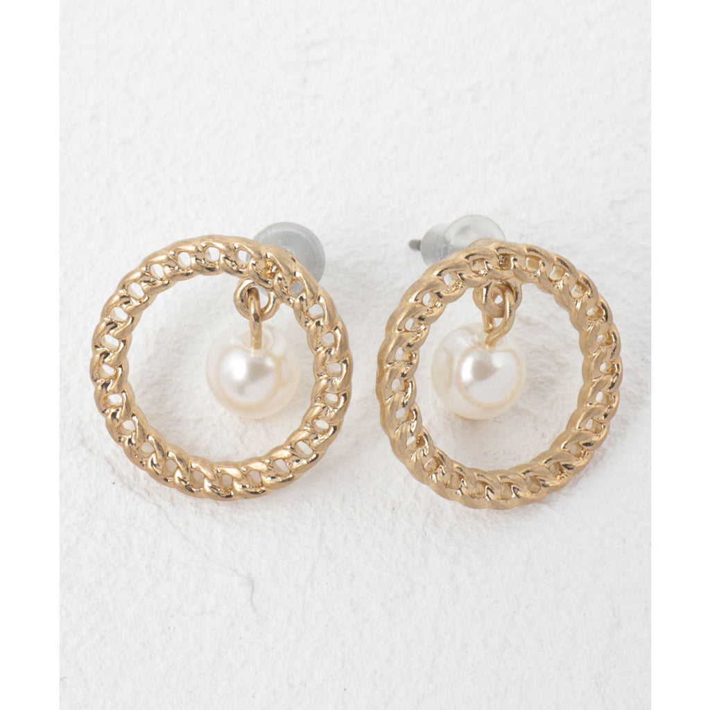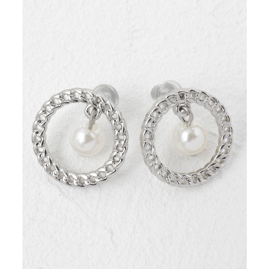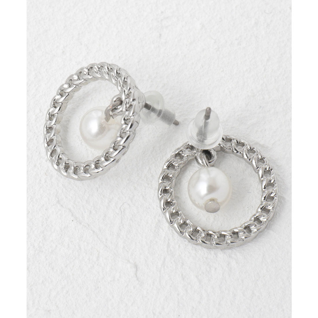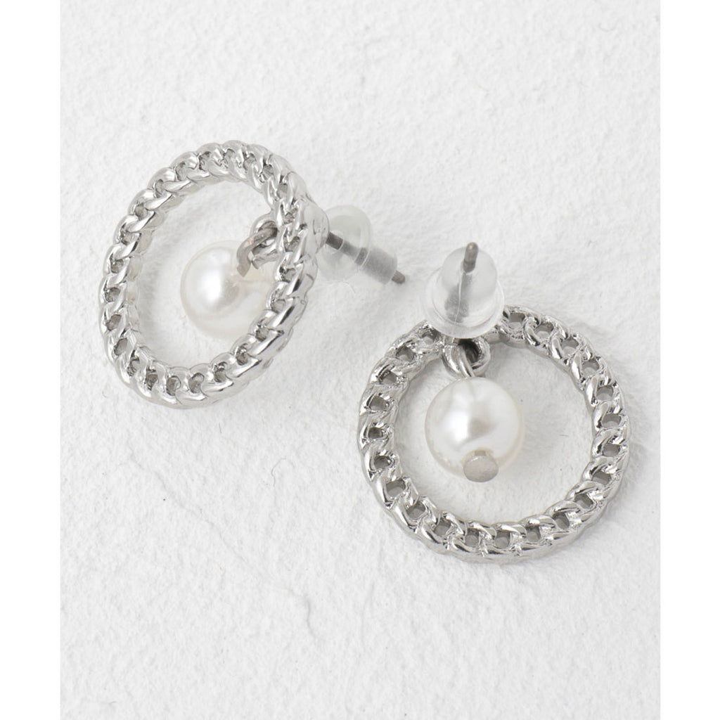 フープはチェーンを丸くしたデザインです。ハードに成りすぎない様にパールを組み合わせました。ピアスのポストはチタンを使用しております。