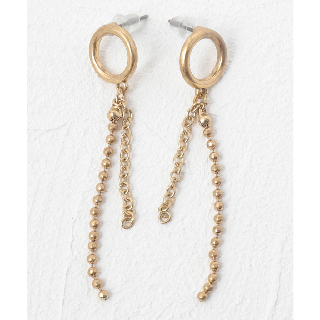 フープの下に2種類の違う種類のチェーンがぶら下がっております。ピアスのポストはチタンを使用しております。