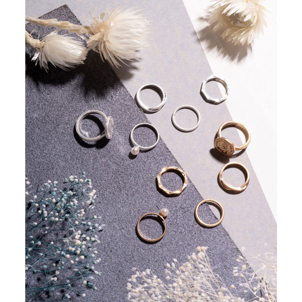 全体的に華奢なディティールのリングセットで、女性らしい指先に仕上げてくれます。