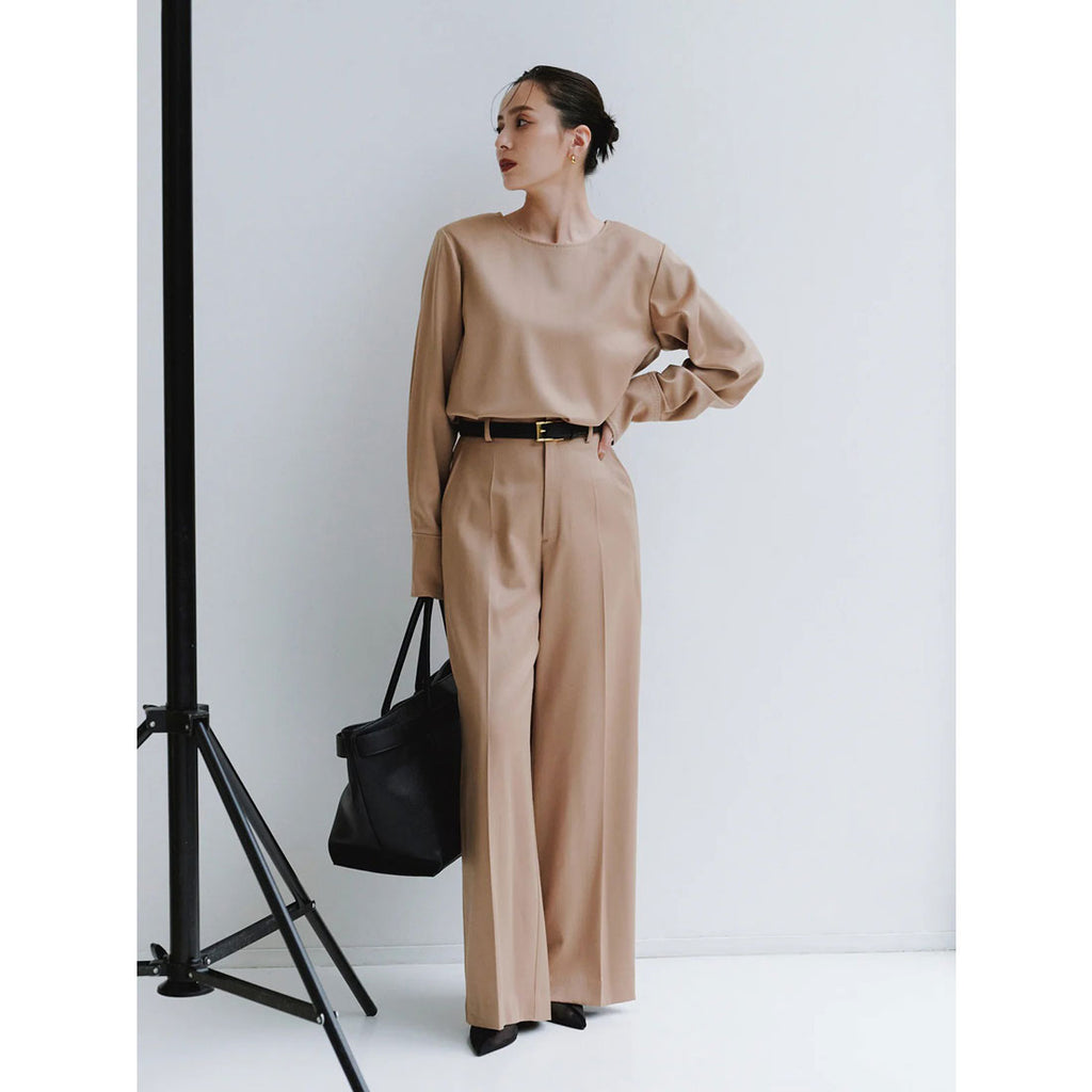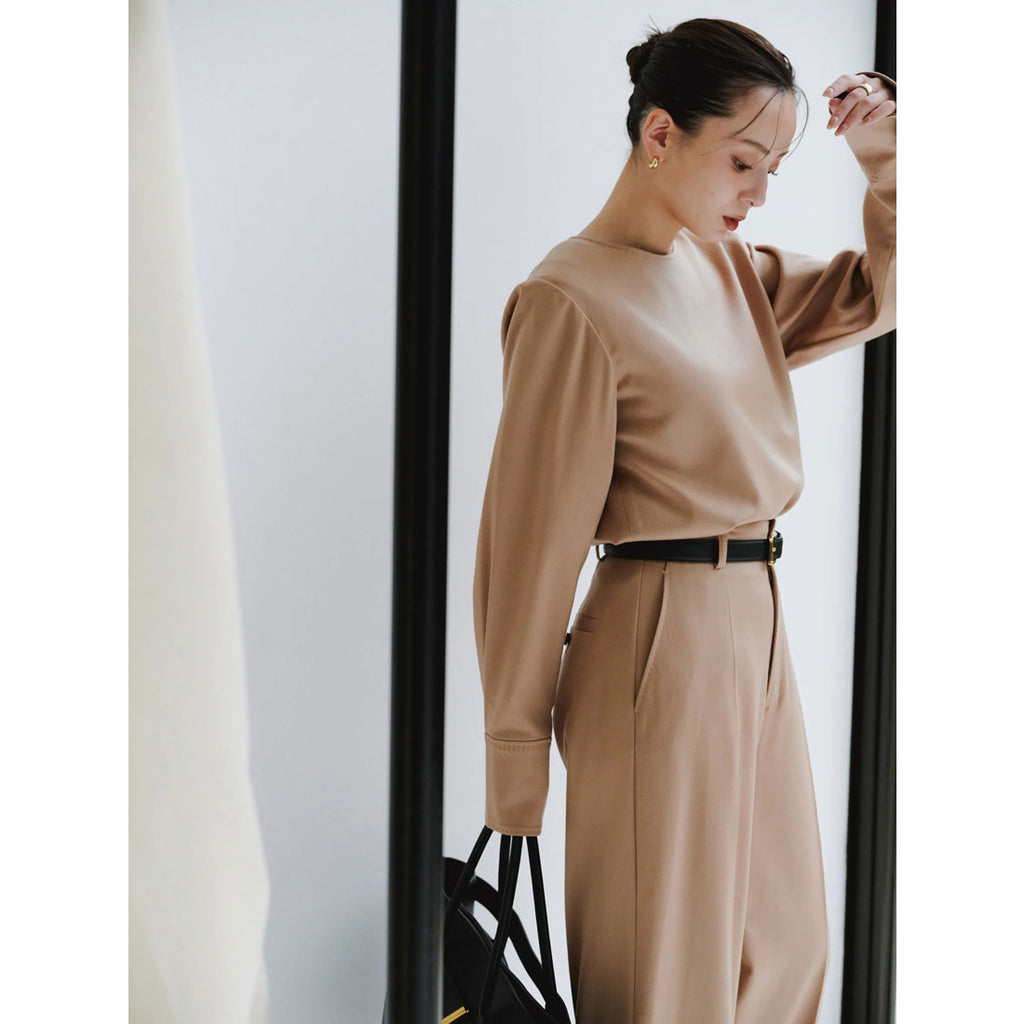 すっきりとした衿ぐりに肩パッドがしっかりと入り、シルエットは控えめながらもこだわりのあるモードなデザインに仕上げました。