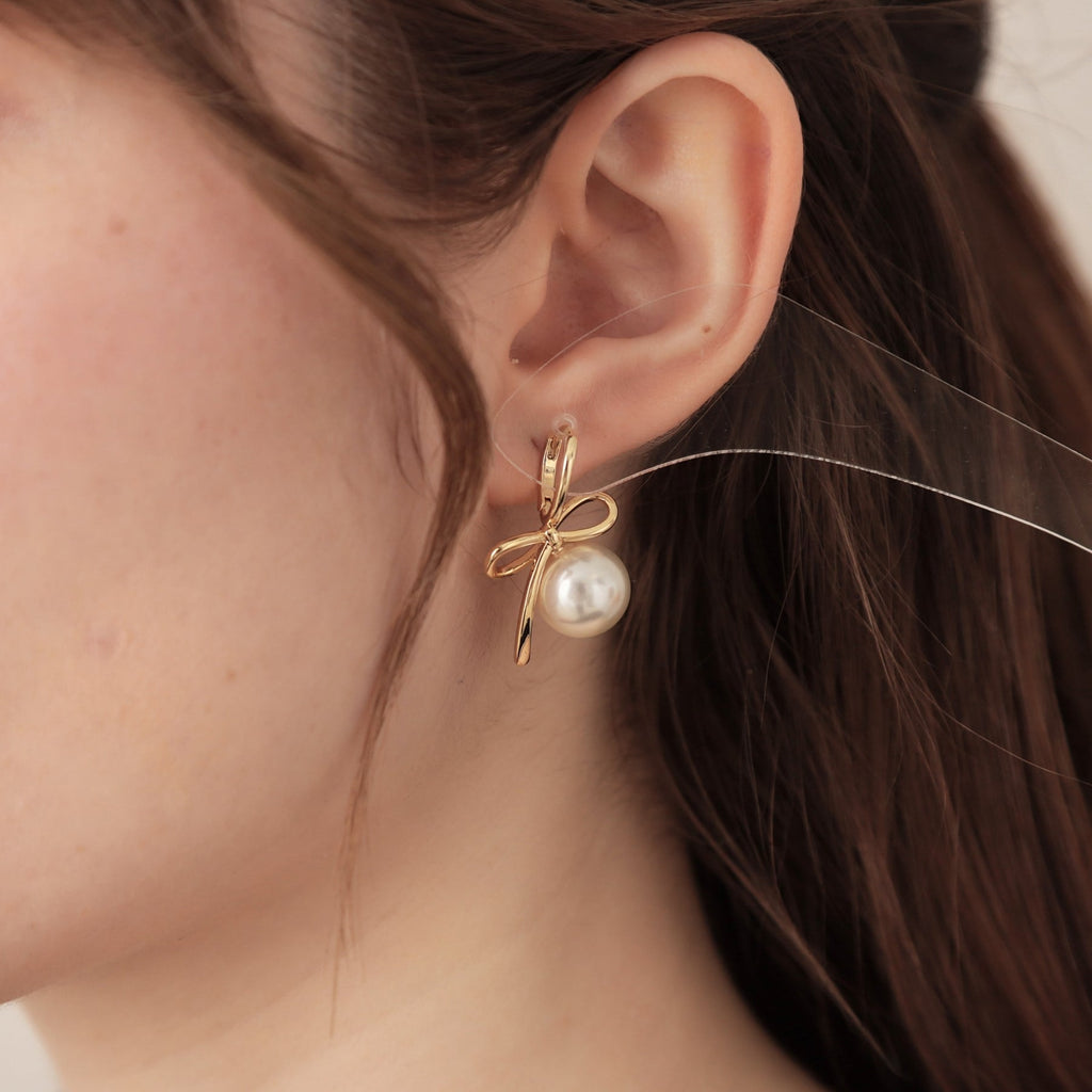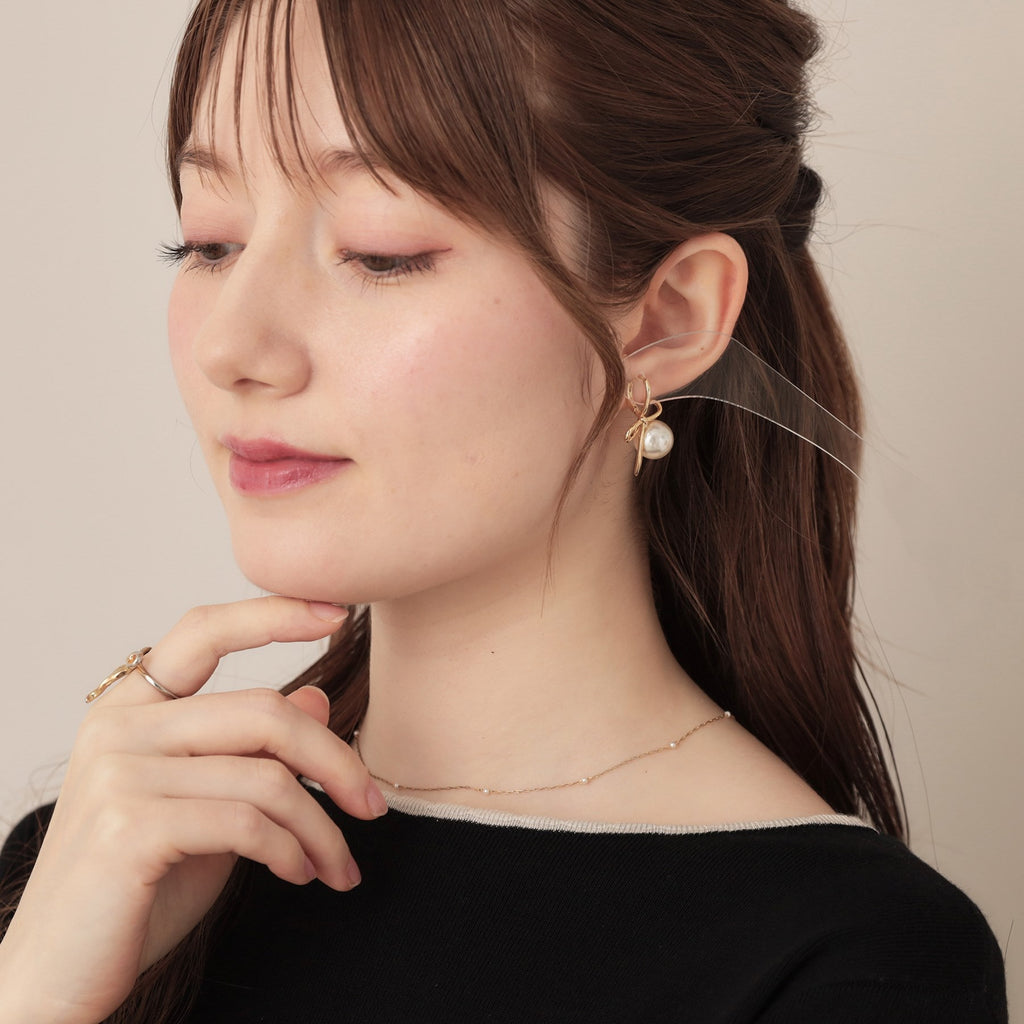 クチュール ブローチ Couture Brooch ノットリボン一粒パール調ピアス