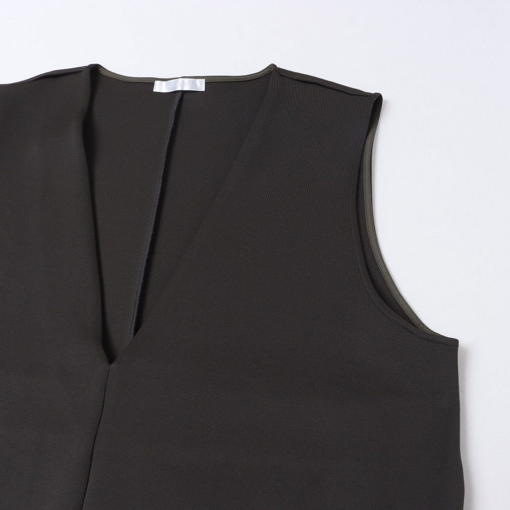 タートルネックと合わせてもすっきり見える、深めVネックのクールなデザイン。