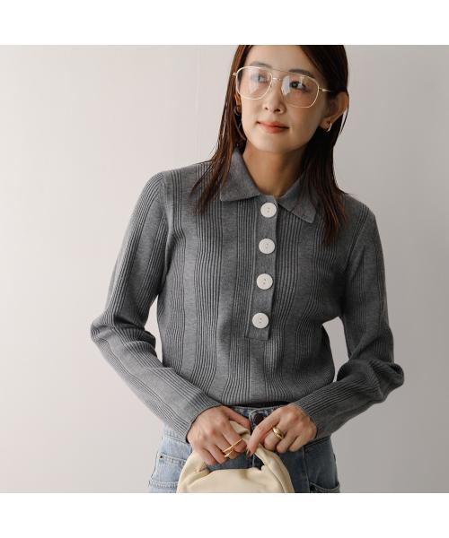 大きめのボタンがアクセントのリブ編みニットポロシャツ。