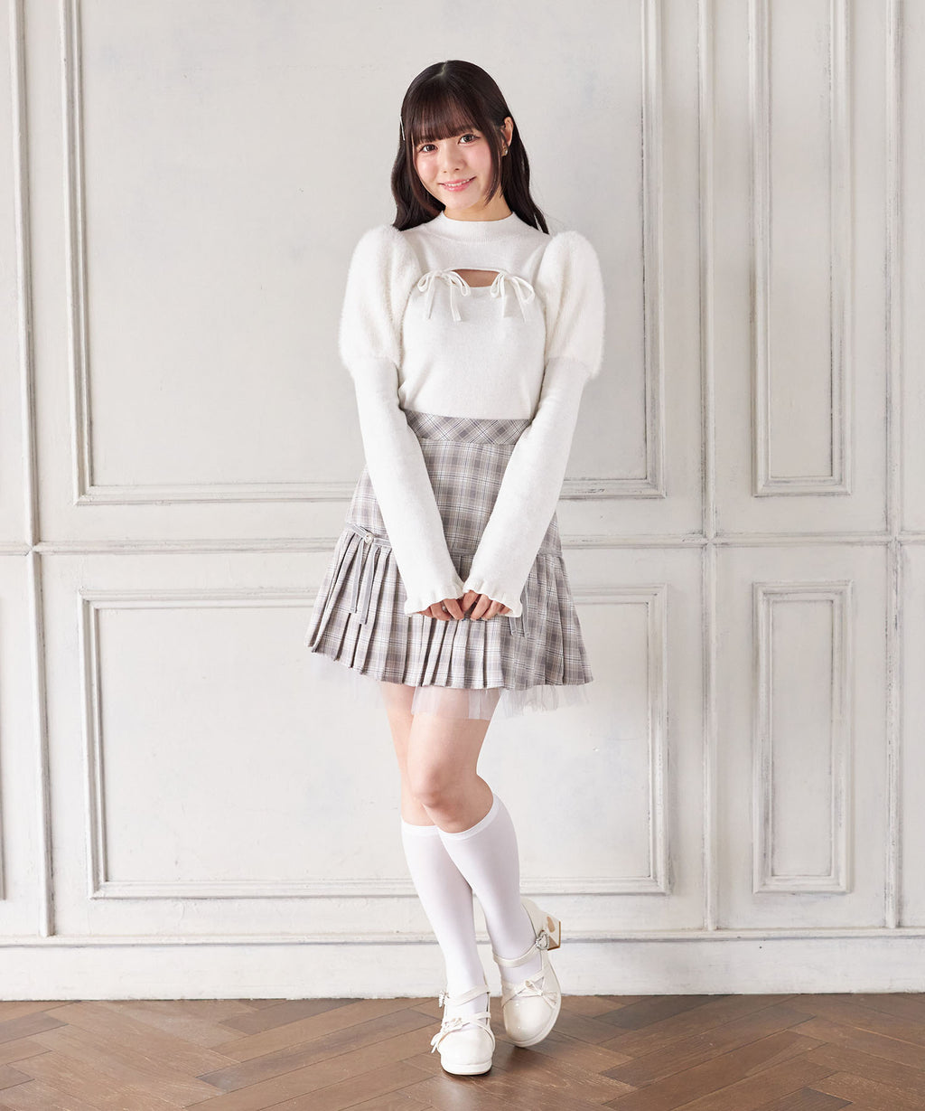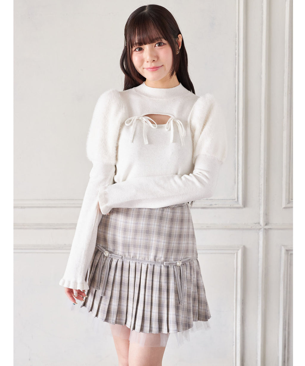 フロントはリボン付きの肌見せディティールでヘルシーな抜け感を演出し、可愛く女性らしさUP!