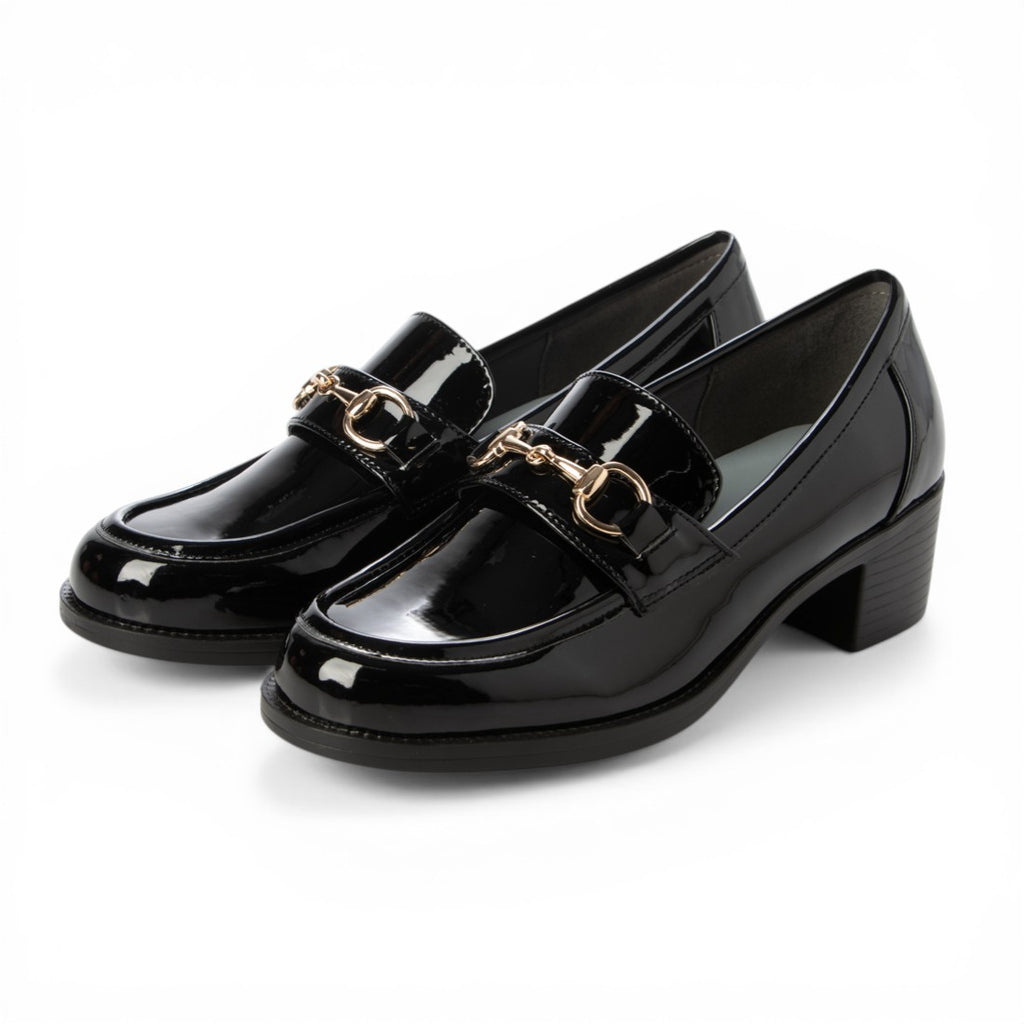 上品なツヤ感のエナメル素材に、クラシックなゴールドのビット金具がアクセント。