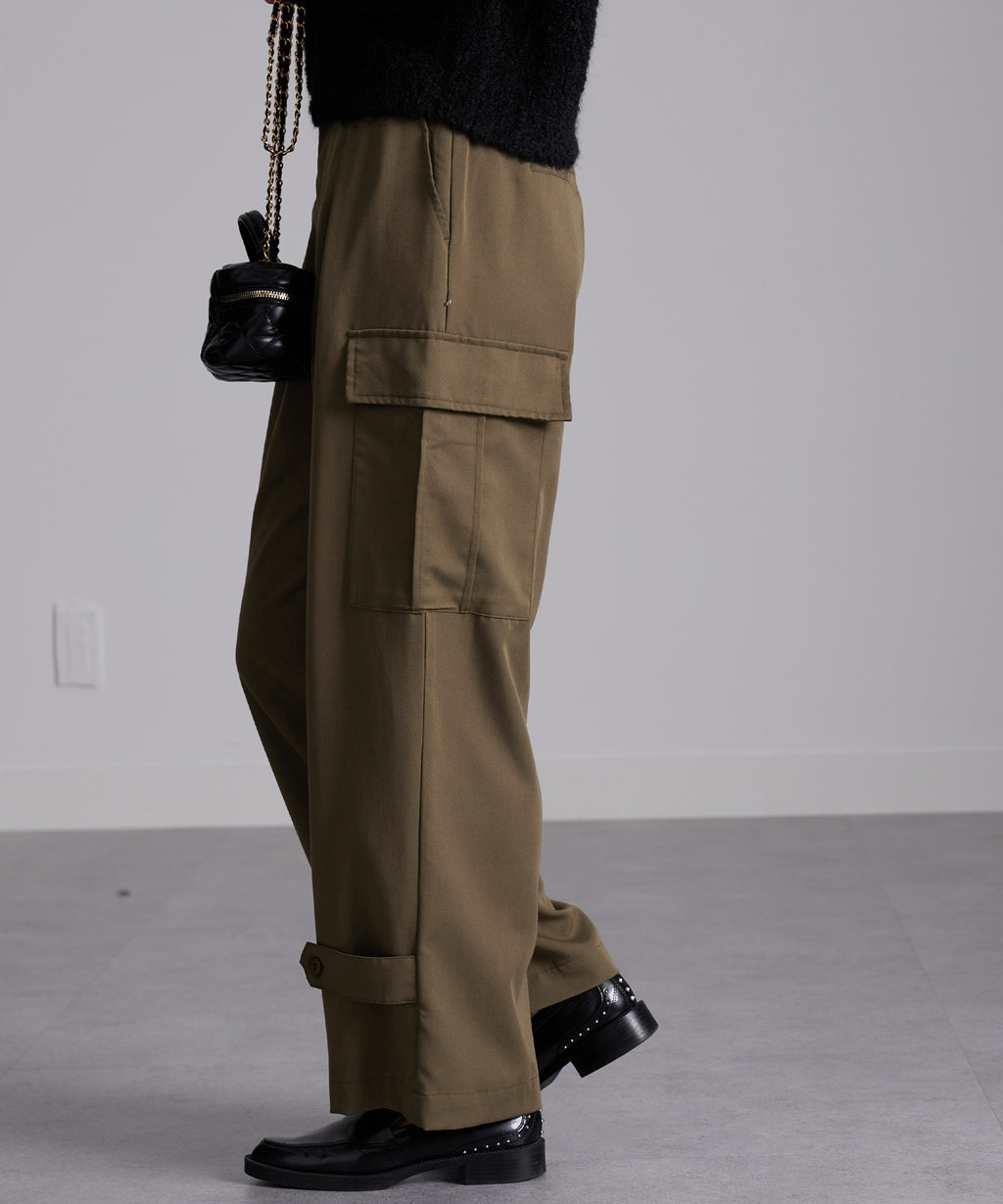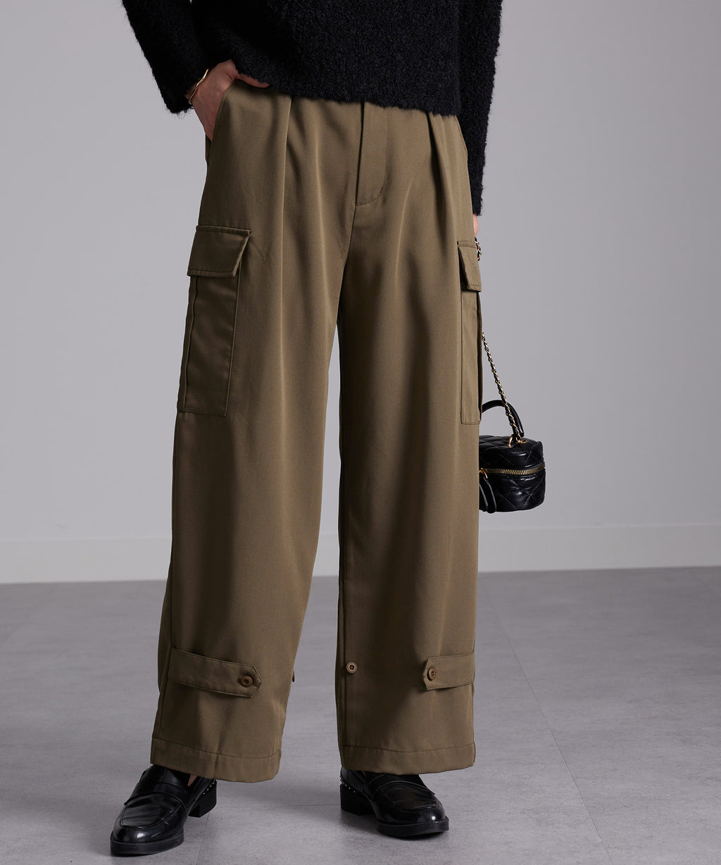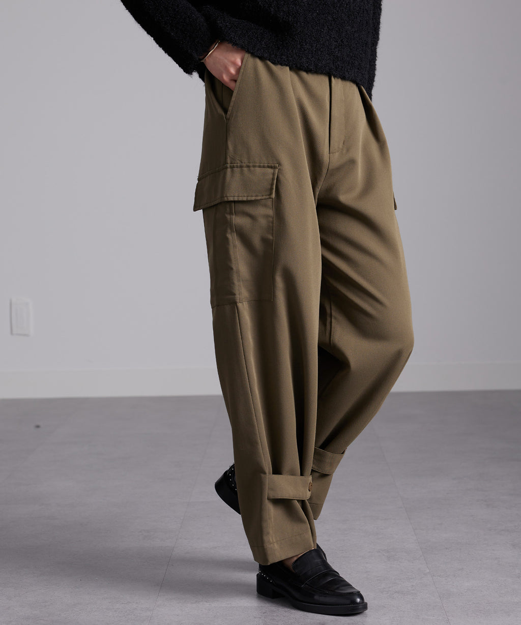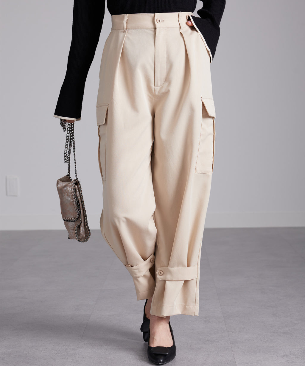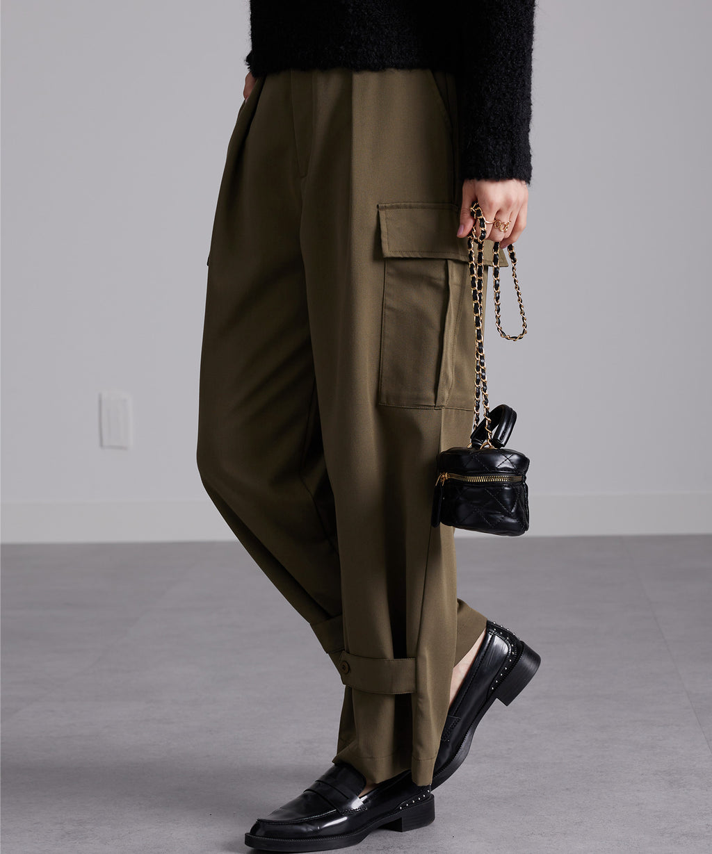 マニッシュなカーゴはきれいめ素材でたちまち旬のスタイルに!裾を絞れるベルト付デザインが今っぽい