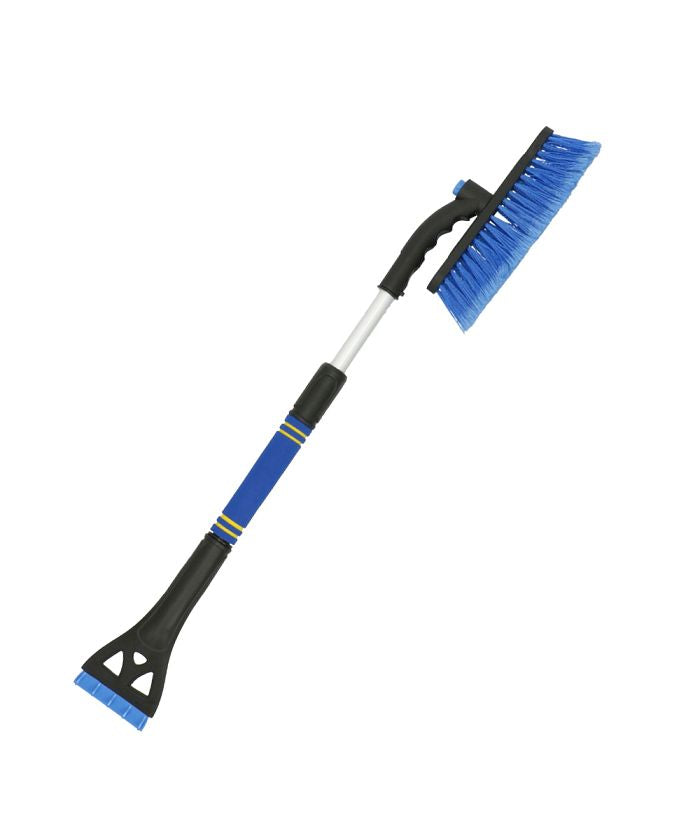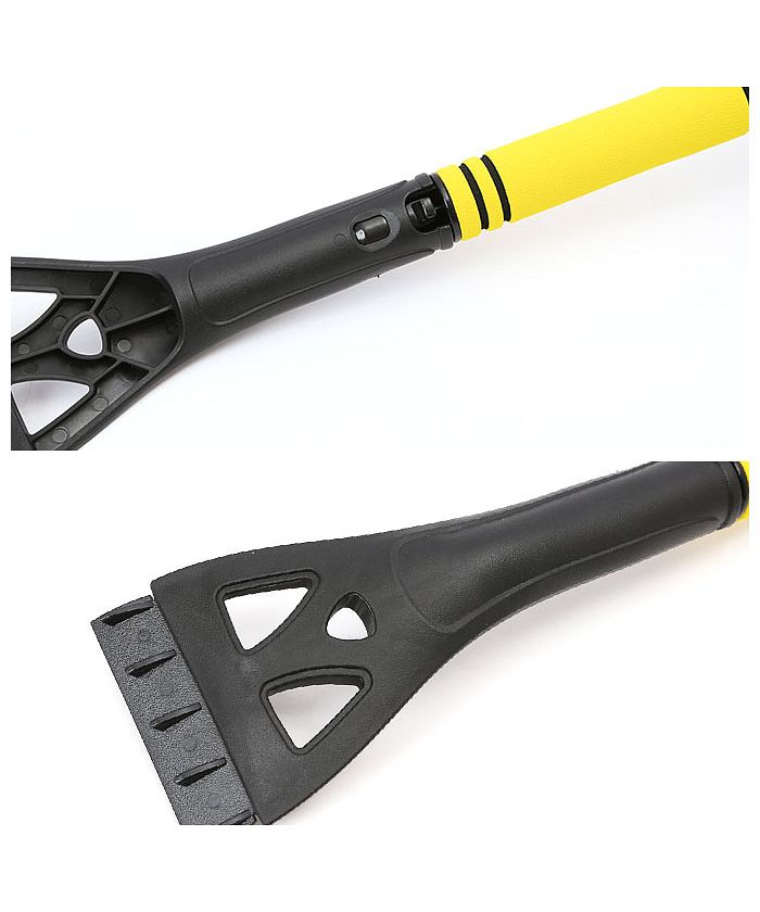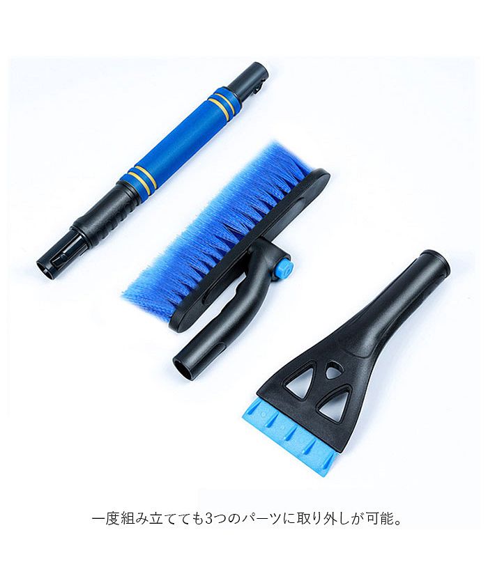車の上に積もった雪や窓の霜取りにおススメのスノーブラシ。 1本で使い分けができるダブルヘッド仕様♪ アイススクレーパー部分は両面仕様になっていて氷や霜の厚さによって使い分けでき、ブラシ部分はヘッドにあるボタンを押すと回転するのでT字型とI字型で使用可能。 長さが最大約80cmまで伸縮可能。車高が高い屋根部分も除雪作業しやすい♪ 持ち手にはグリップがあり手に馴染みやすい。 軽量な素材で作られているから、腕や手に負担がかかりにくいのも魅力的。 一度組み立てても3つのパーツに取り外しが可能。使わない時は車のトランクや後部座席、カバン等への収納や保管に便利。