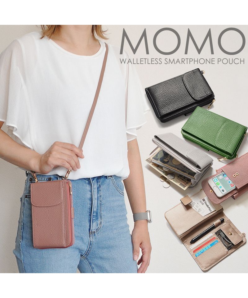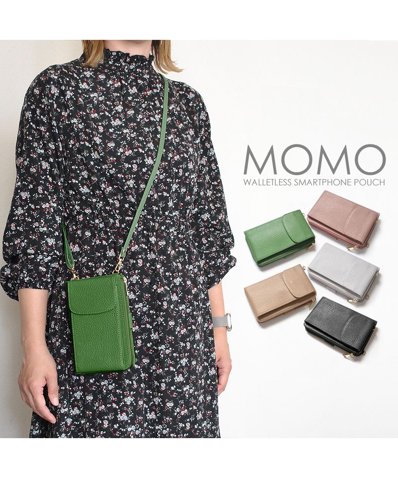 ピンク 桃色 桃 グリーン 緑色 緑 ライトグレー グレー 灰色 ベージュ 茶色 うす茶 クリーム アイボリー くすみカラー ブラック 黒 ポシェット ファスナー カード横入れ カードケース アンドロイド スマホショルダーバッグ ショルダータイプ ショルダーストラップ 取り外し ペンホルダー ポケット 便利 可愛い お洒落 L字ファスナー ミニバッグ スマホ 縦型 実用的 大人 小さめ お財布機能付き 20代 30代 40代 iPhone android momo MOMO momo-an-5313