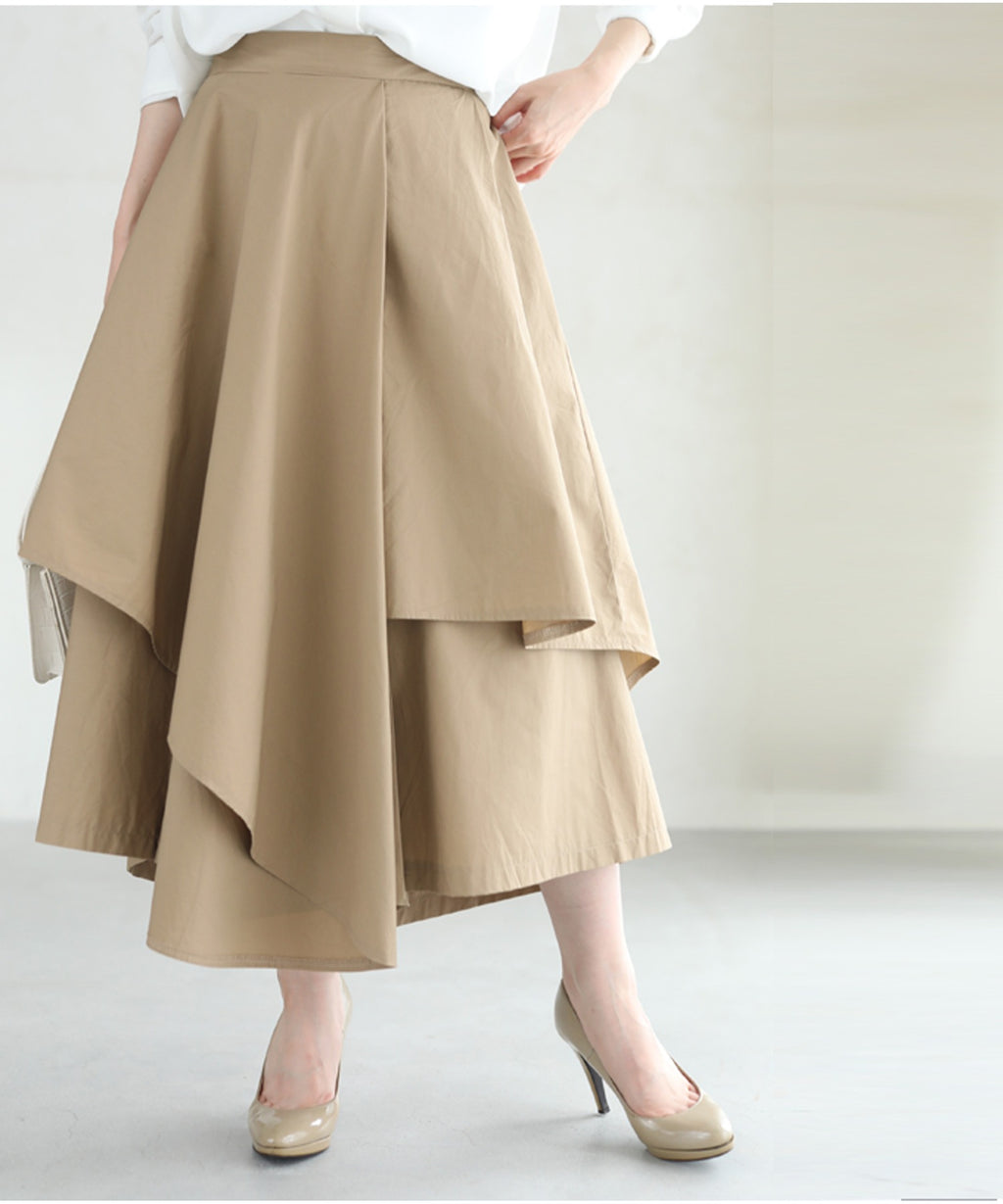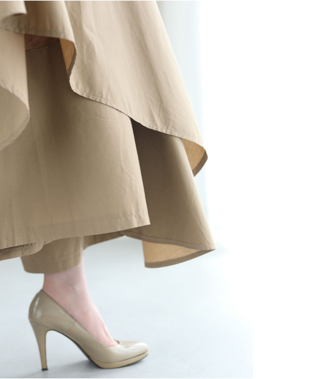 ■動く度表情を変えるランダム裾動きのあるランダム裾。360度違った表情を楽しめる1着。生地を2重に重ねたことで立体感が生まれます。これがオシャレのポイント。体型もカバーできるシルエット。