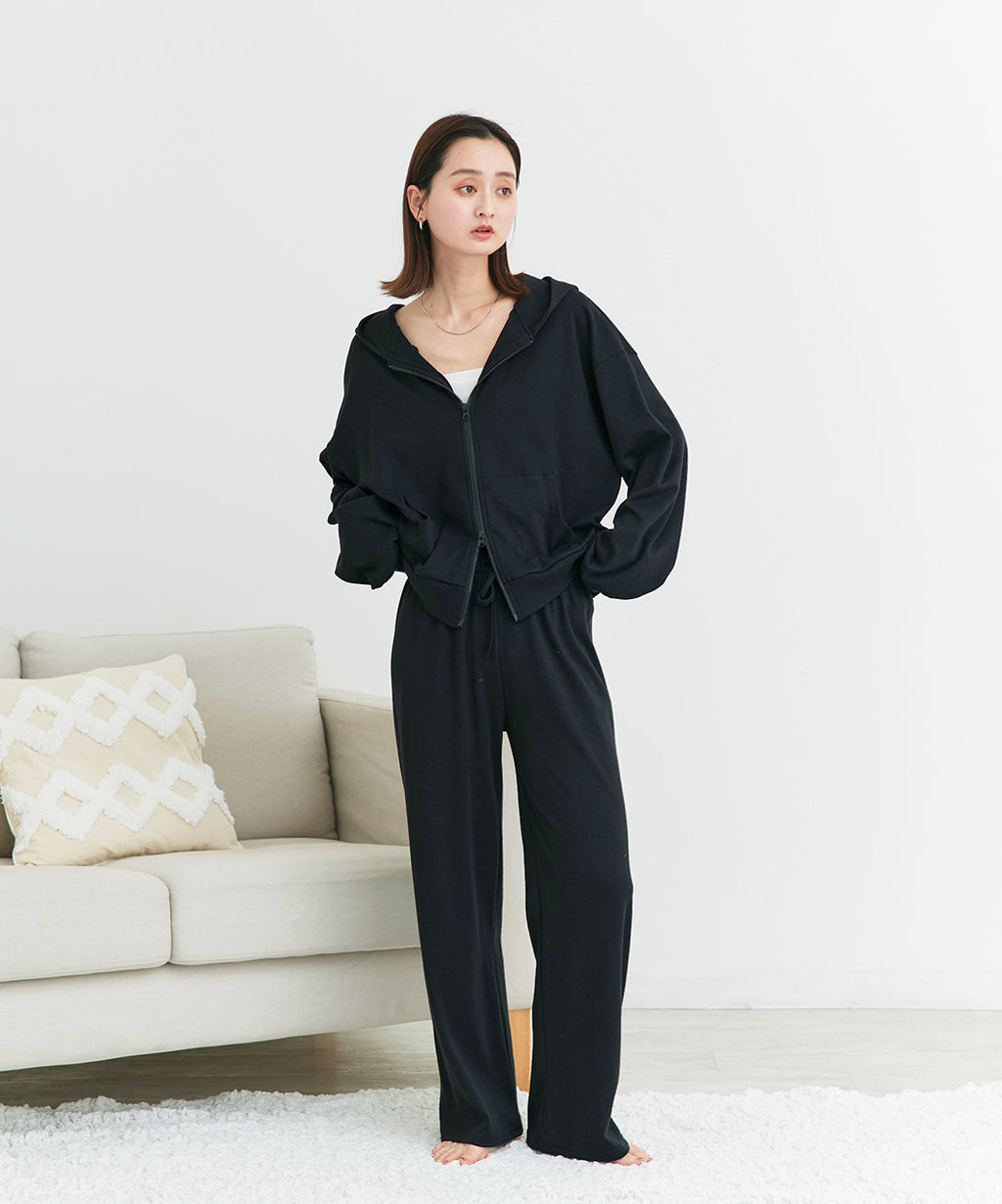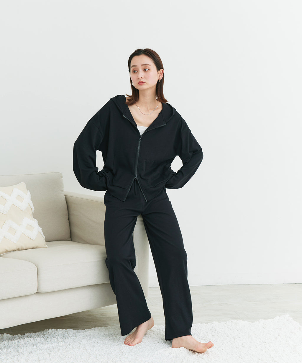 秋 秋コーデ 秋ファッション 秋服 夏 夏ファッション 夏服 カジュアル カジュアルコーデ 大人 大人カジュアル オフィスカジュアル オフィス オフィスファッション オフィススタイル 韓国 韓国ファッション 韓国コーデ プチプラ プチプラファッション レディース Y2K 量産型 キレイめ 綺麗め きれい きちんと パーカー ジップパーカー ブルゾン アウター ライトアウター 羽織り 防寒 部屋着 ルームウェア フードパーカー フーディ フード付き スムース ワンマイル ワンマイルウェア 楽ちん 楽 ウエストゴム ロングパンツ フルレングス 前開き フロントファスナー ストレスフリー 重ね着 レイヤードコーデ セットアップ セット 2点セット 薄手 さらさら シンプル 無地 ダブルジップ ホーム 杢グレー グレー ブラック 黒 アイボリー