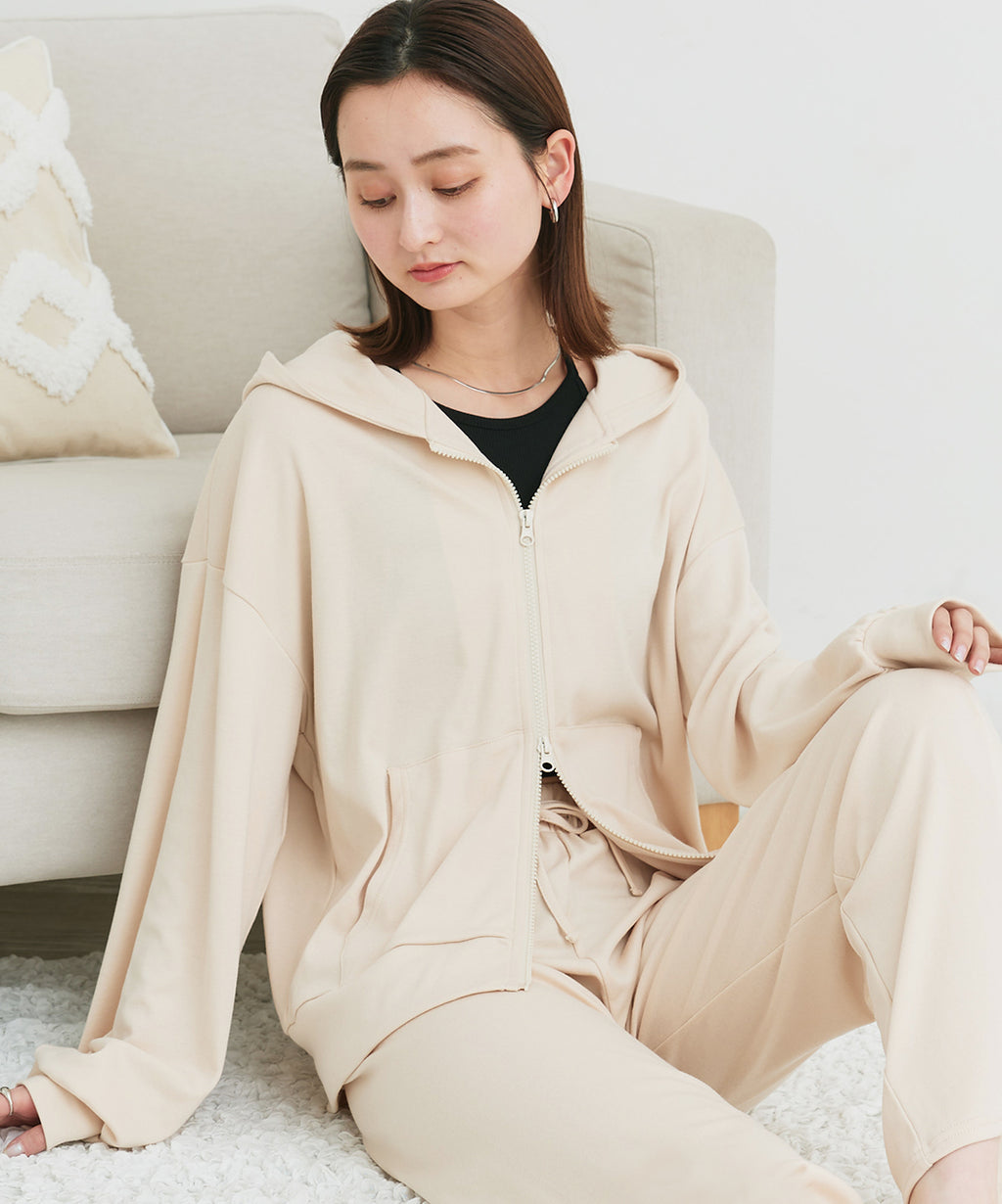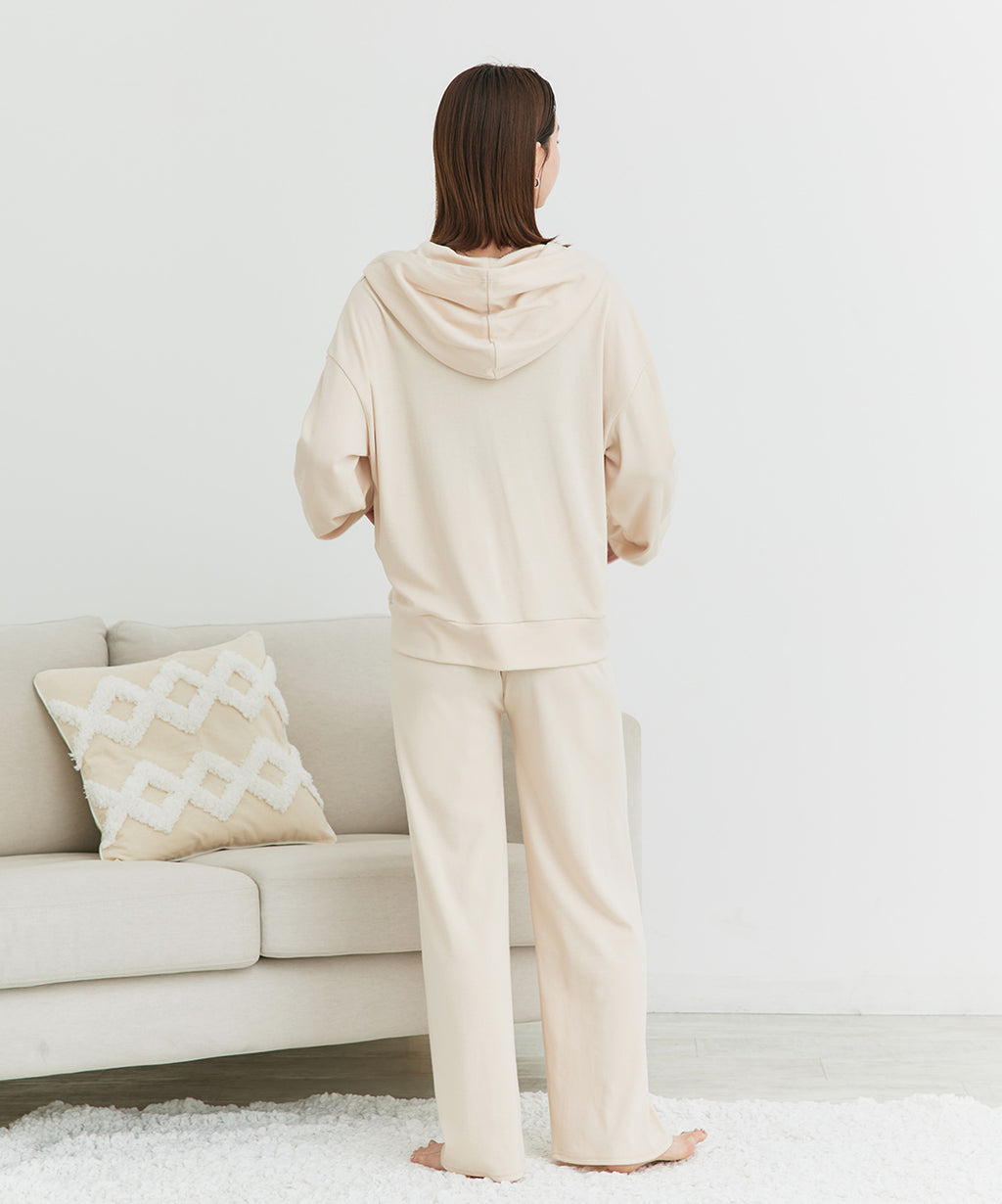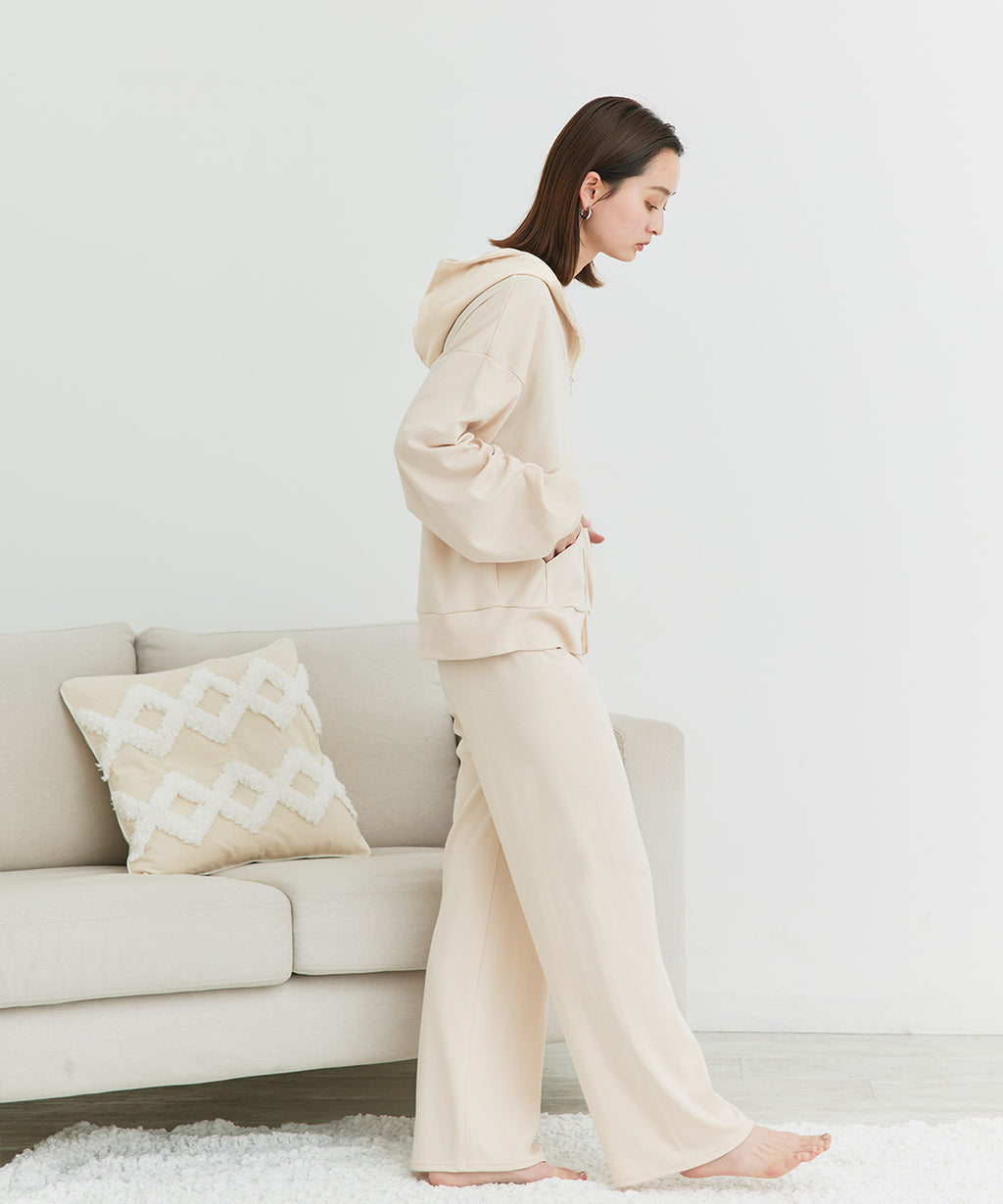 柔らかく肌触りの良い素材のリラックススタイルが完成するルームウェア。
