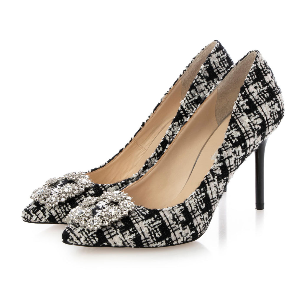 セブン定番人気のスティレットヒールパンプス(102359)にビジューバックルでアクセントをプラスしたクラシカルな1足。無駄のない美しいシルエットにストーンが映え、履くだけで特別な気分にさせてくれる一足です。