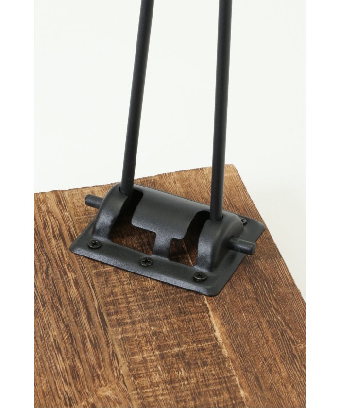 古材のようなウッドに、アイアンレッグを組み合わせたラウンドテーブルの脚折れタイプ。