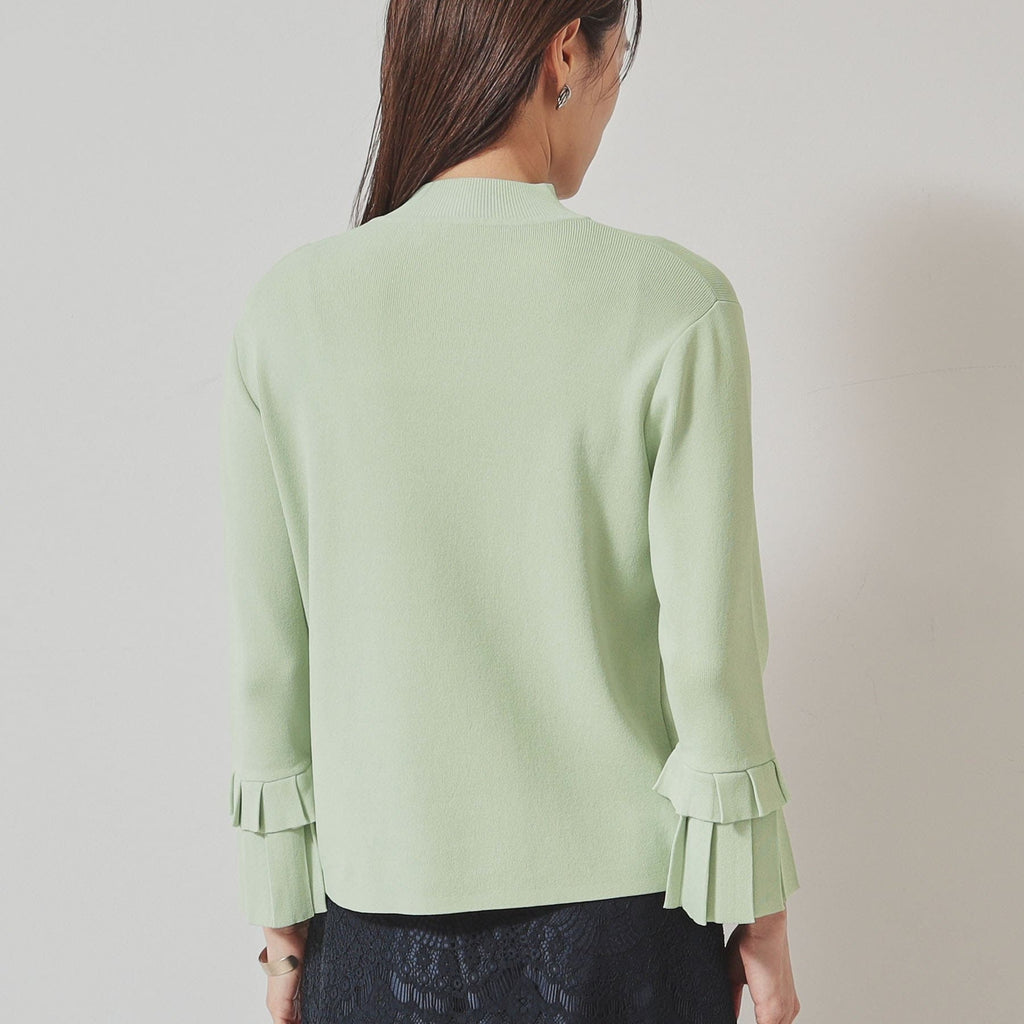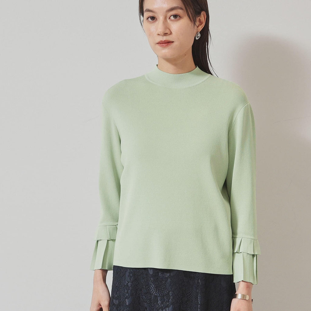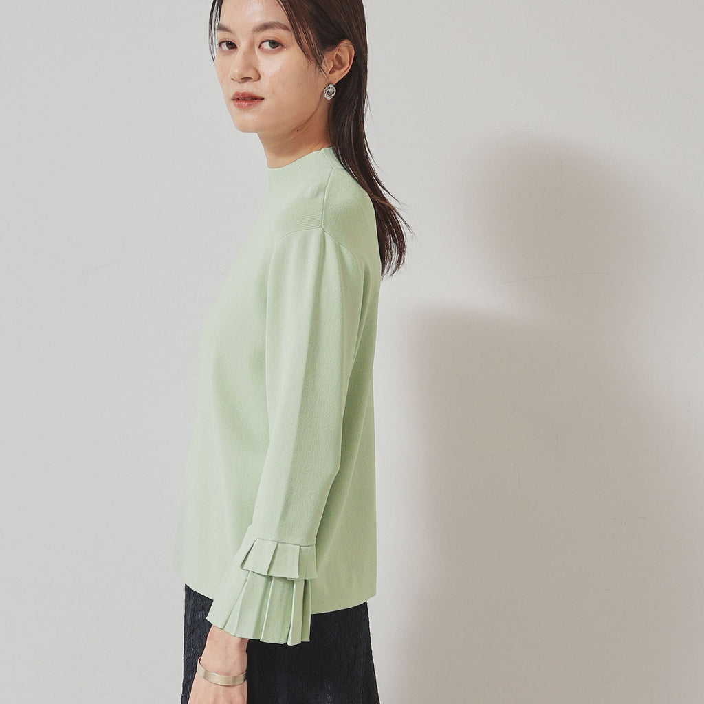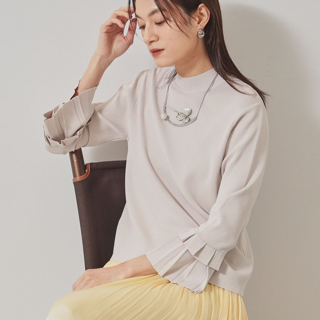 袖口に施されたプリーツデザインがエレガントなムードのニットプルオーバー。