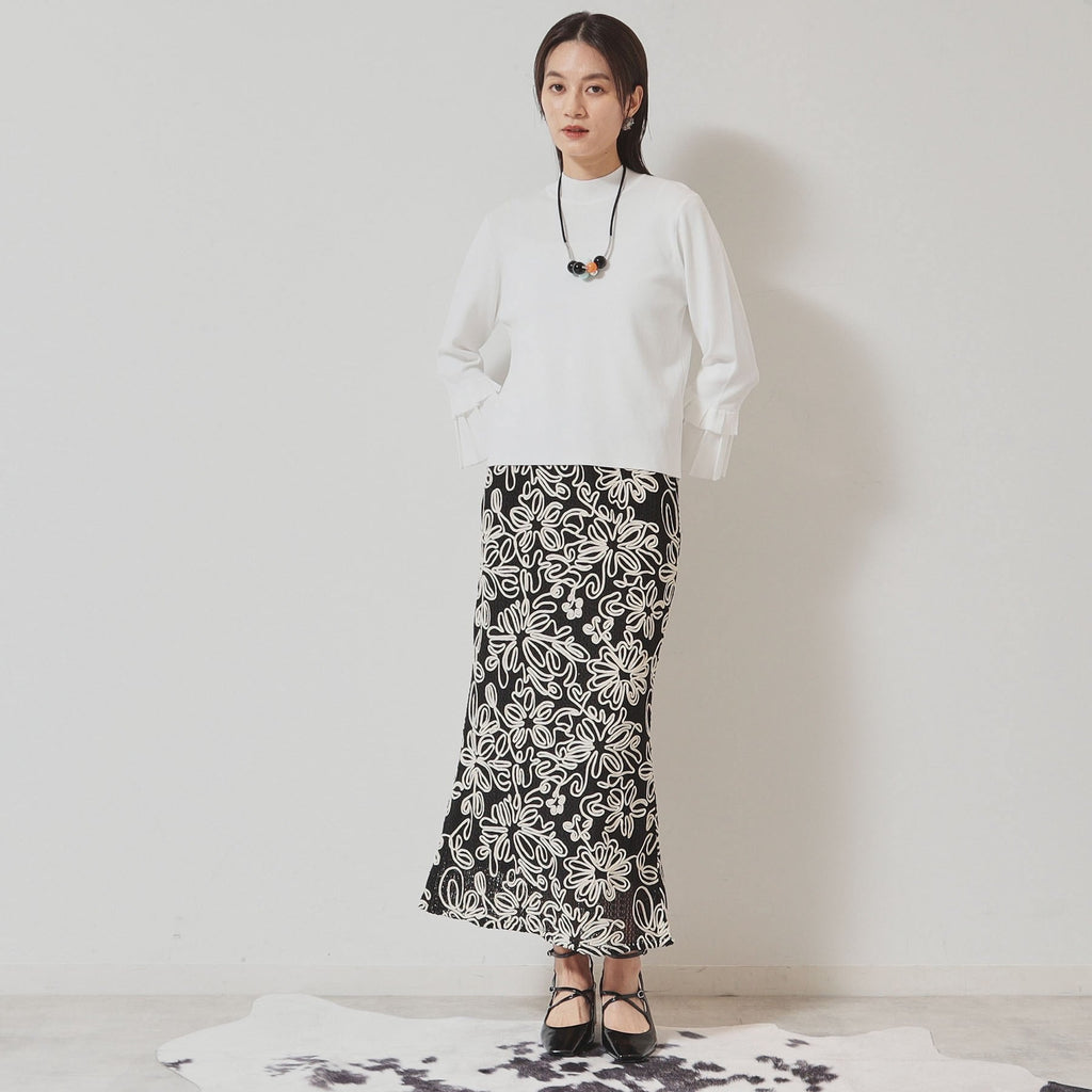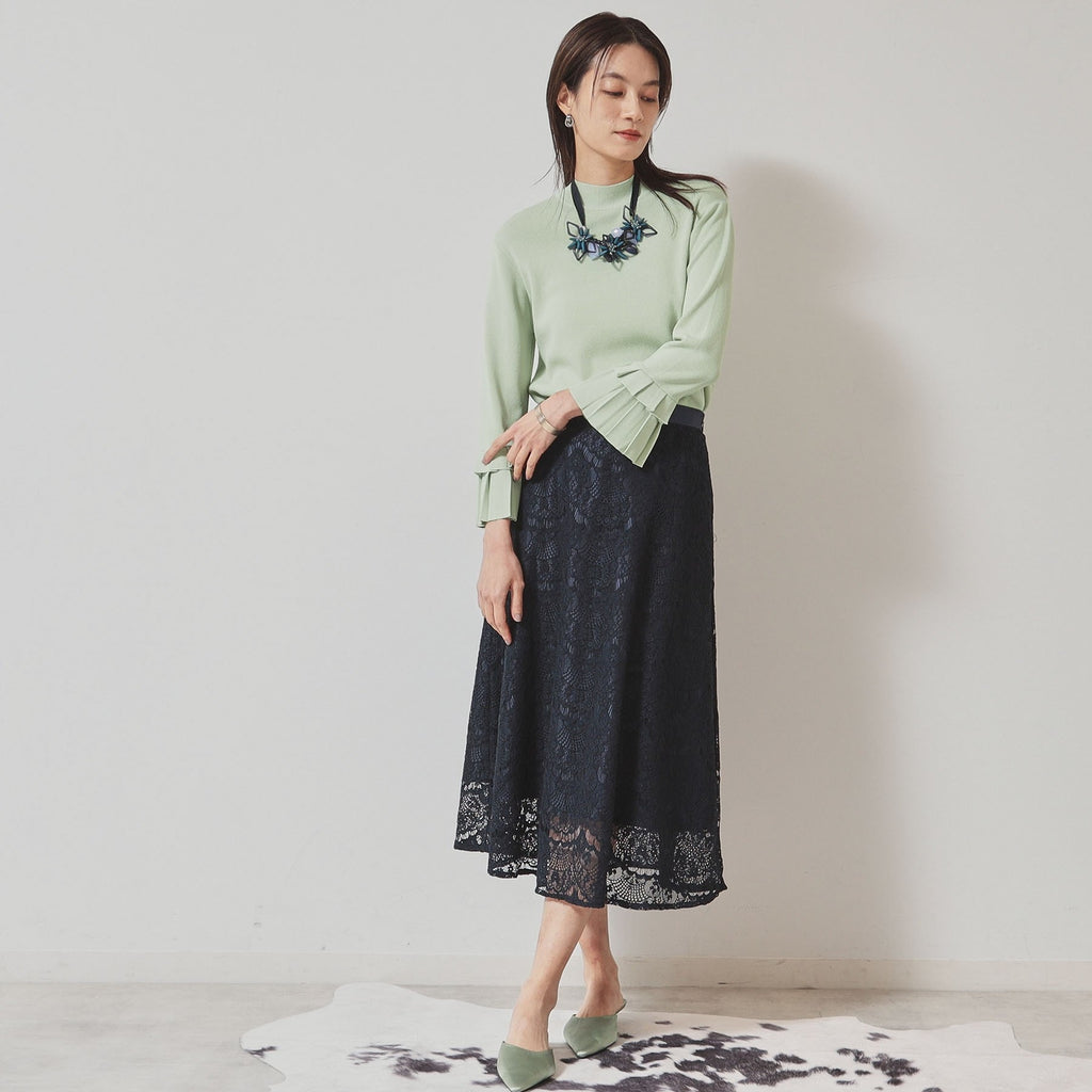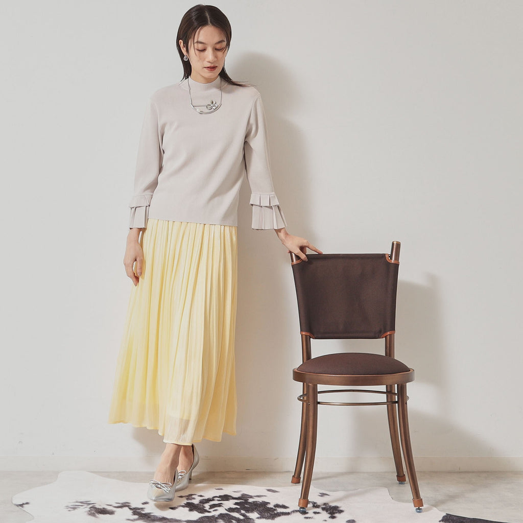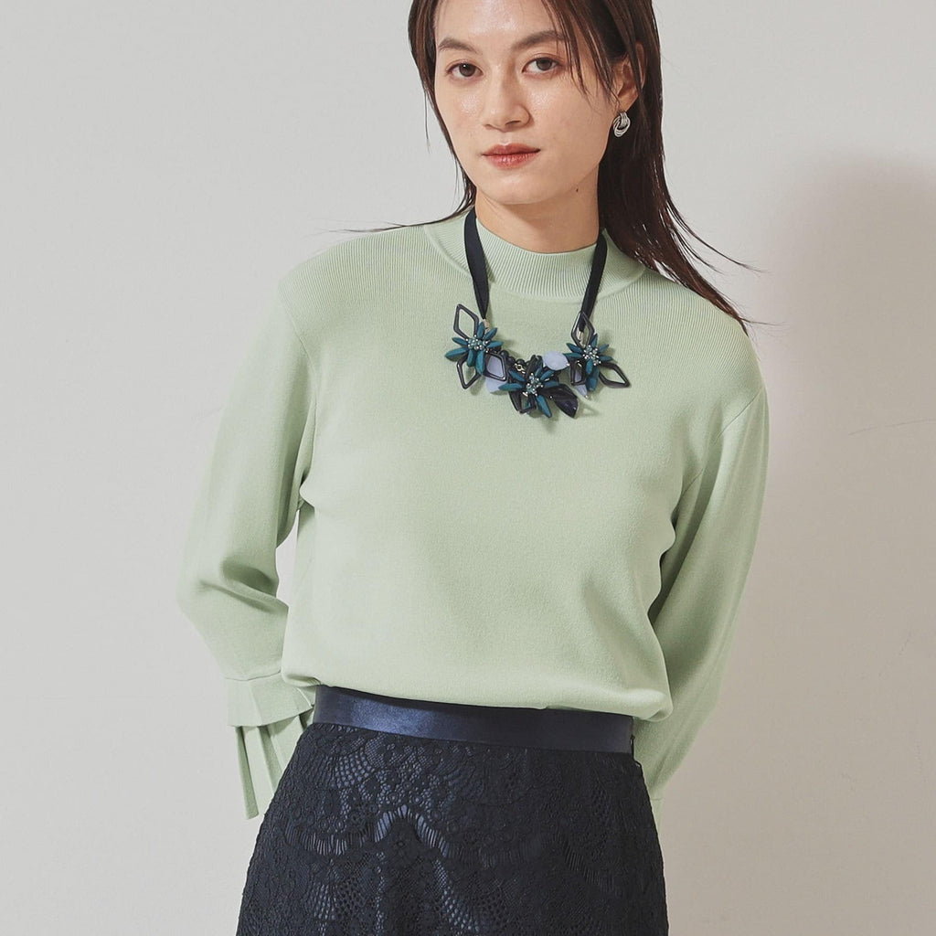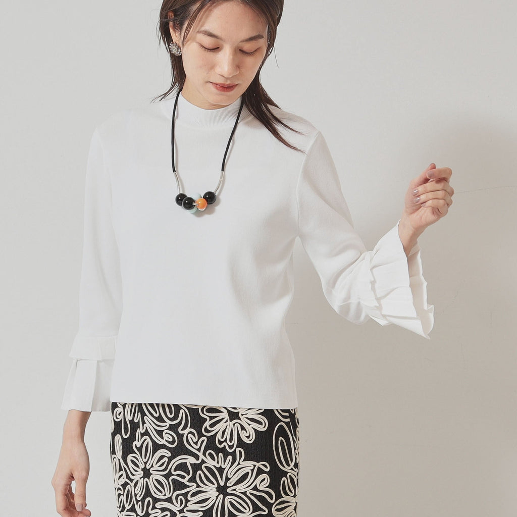 袖口に施されたプリーツデザインがエレガントなムードのニットプルオーバー。