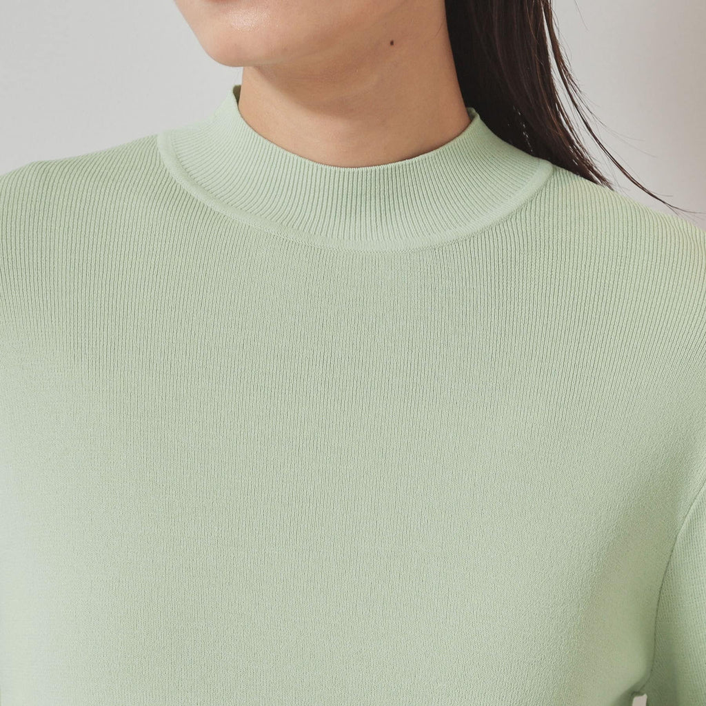 高すぎないハイネックなので、大人の女性らしいシックな雰囲気を醸し出しています。
