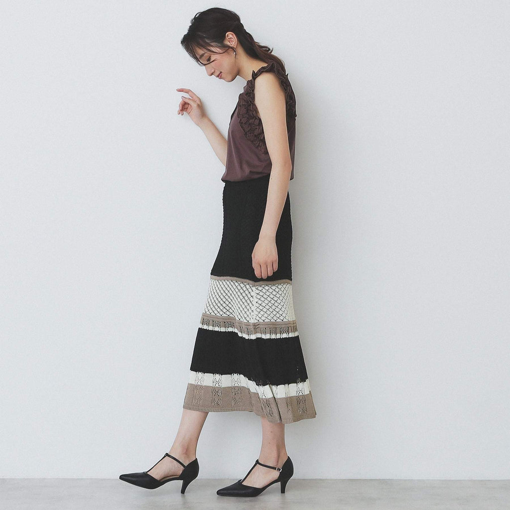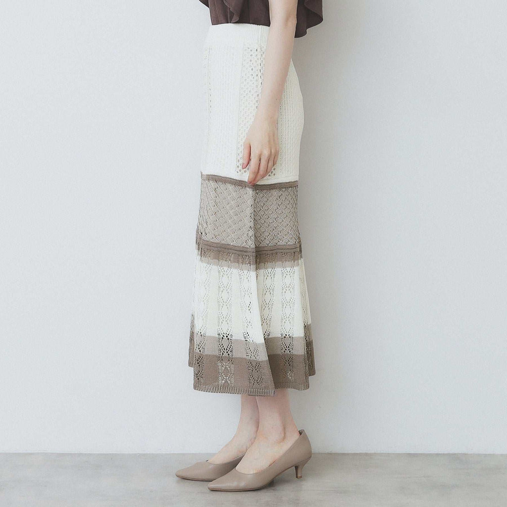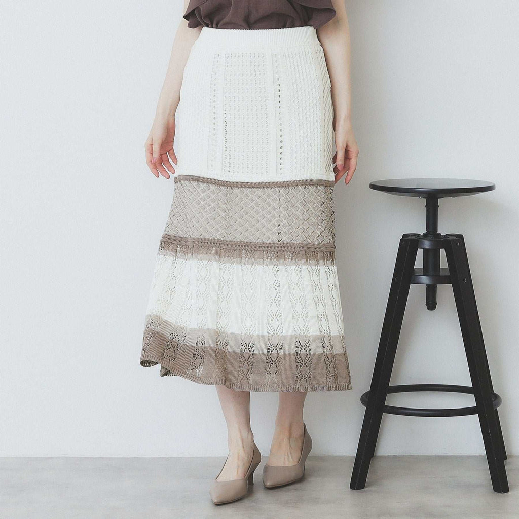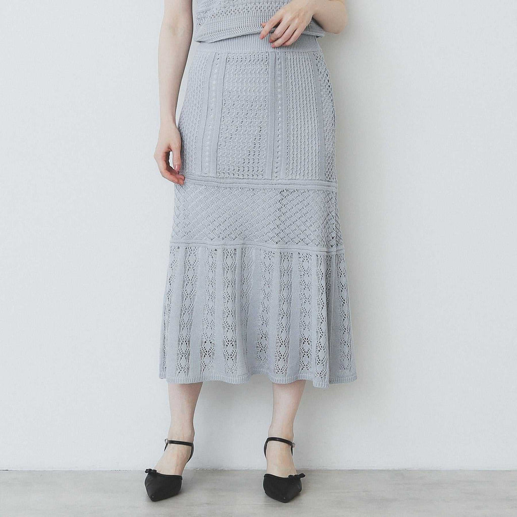 インデックス index 透かし編みフレアニットスカート【洗濯機可】