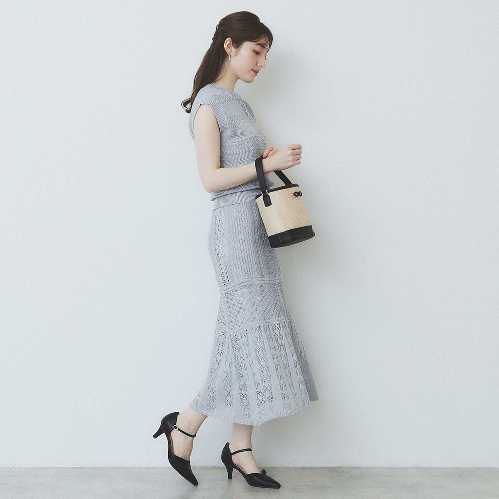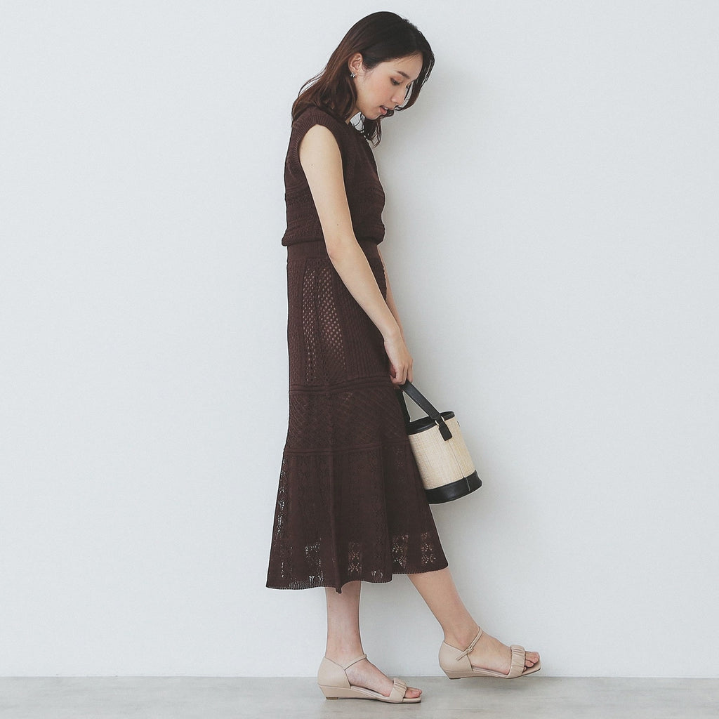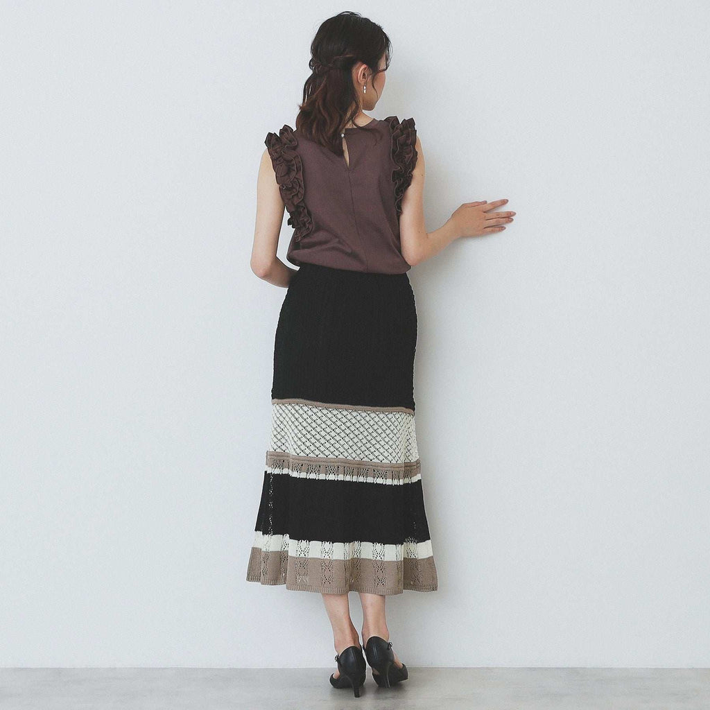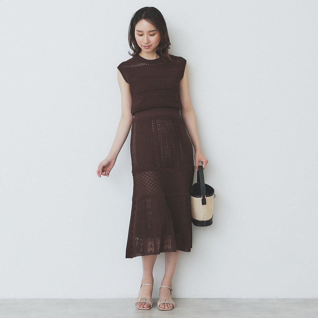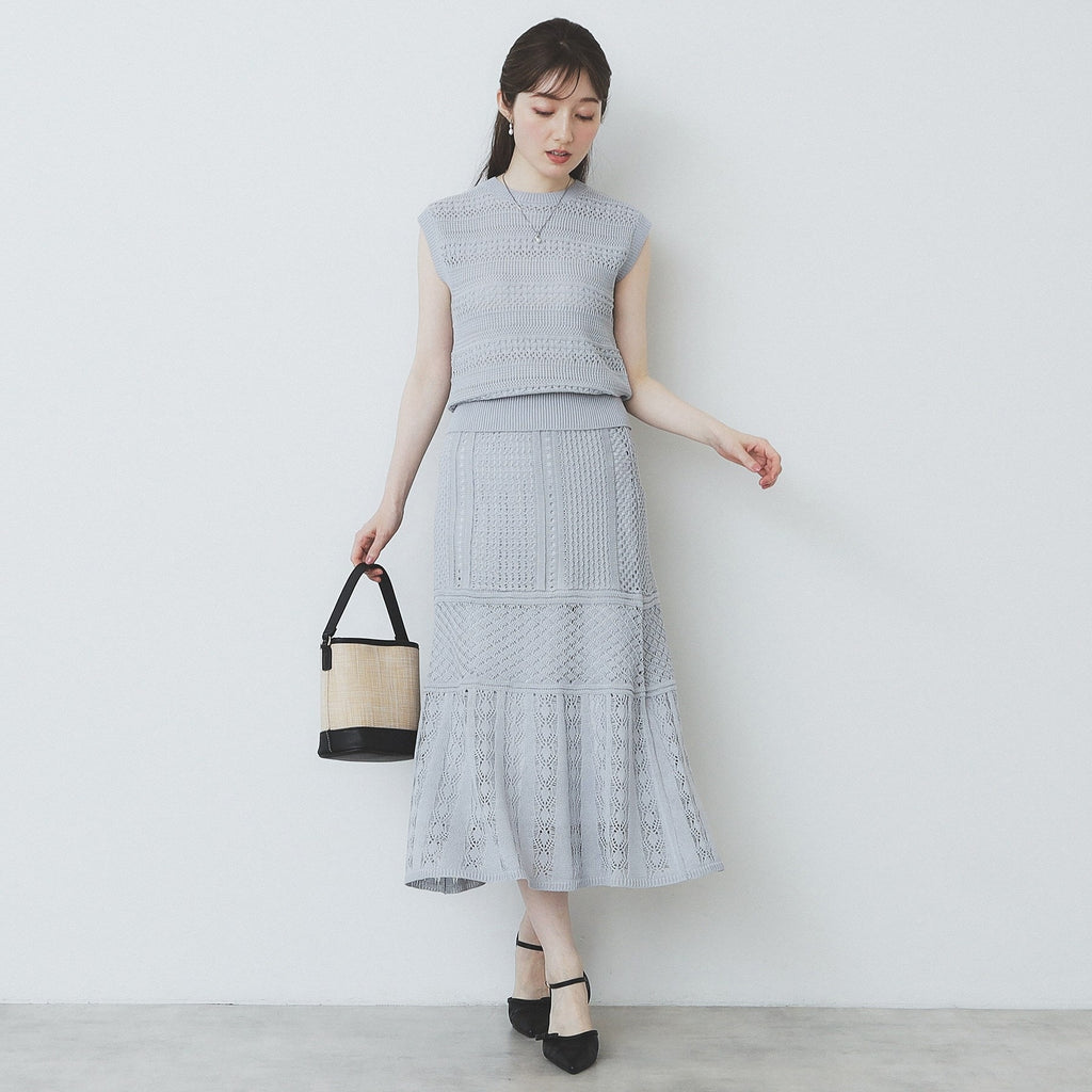 インデックス index 透かし編みフレアニットスカート【洗濯機可】