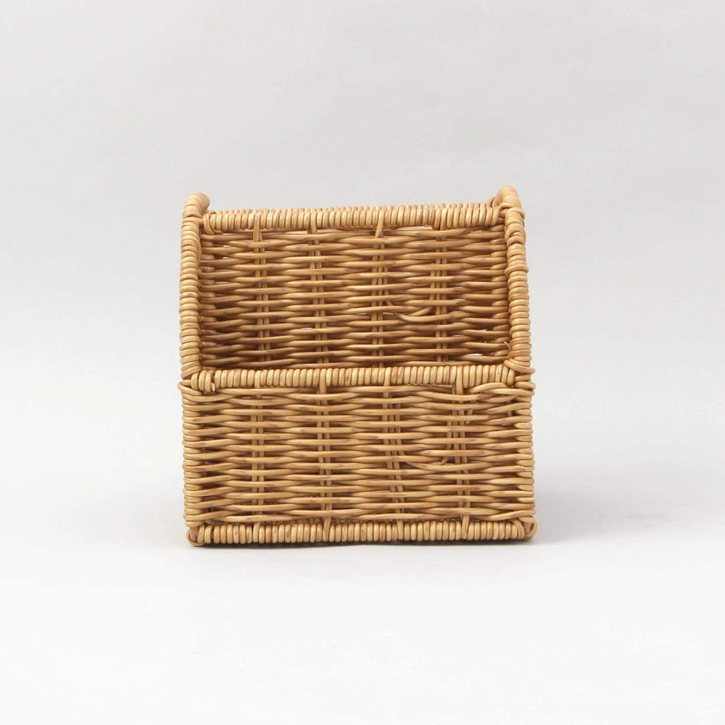 水や湿気に強いPPラタンで編まれており、表と裏どちらからでも取り出しやすいシンメトリーデザインです。