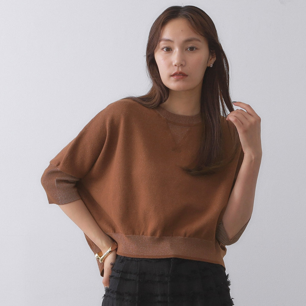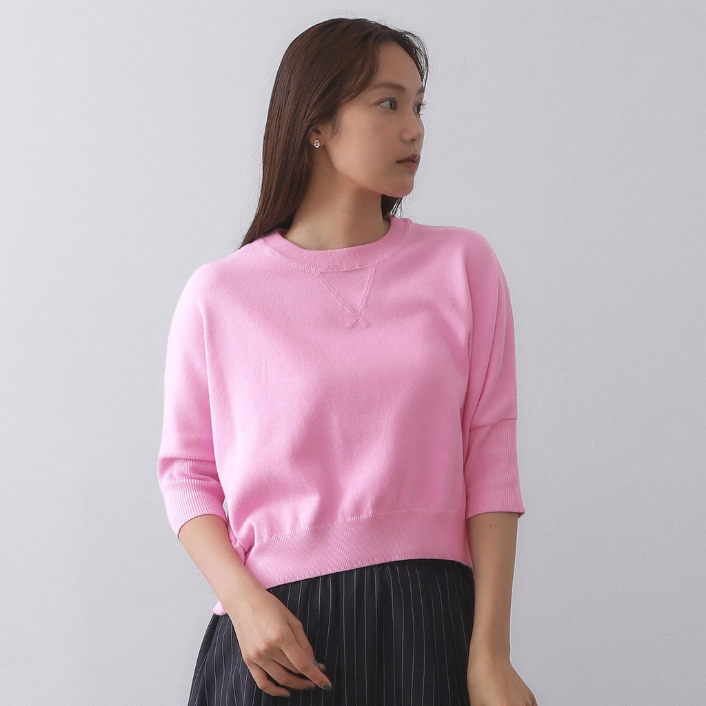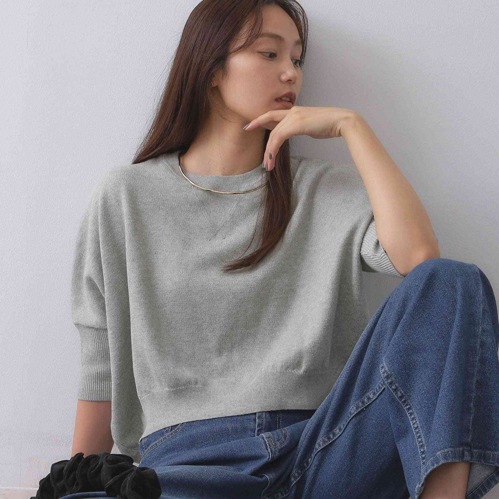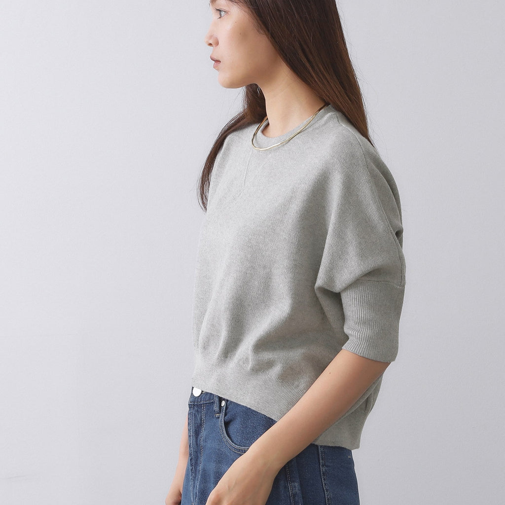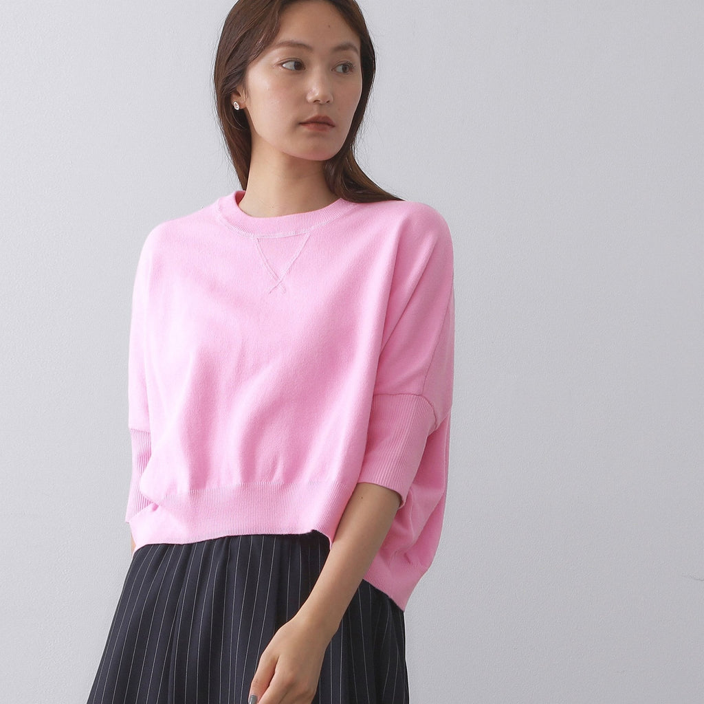 スウェットライクに仕上げたドルマンニットプルオーバー