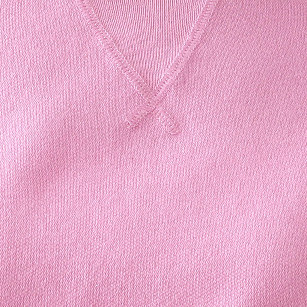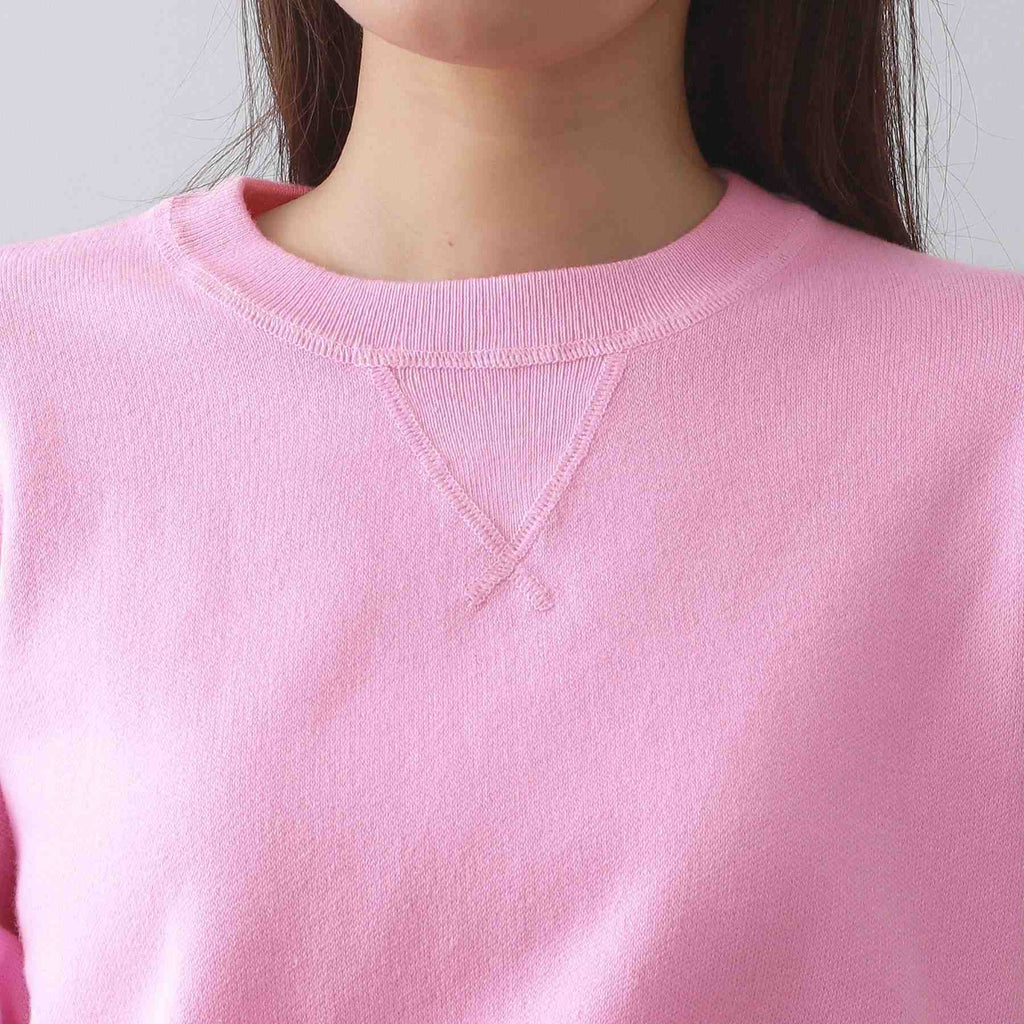 ・襟ぐり・袖口・裾のリブ使いと、ネック下にはガゼットデザインを加え、よりスウェットに見えるデザインディテールを採用しています。