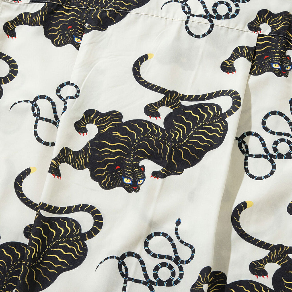 エキゾチックで妖艶、なんとも色っぽい動物や草花が特徴の現代アート作家 Miho Murakamiのグラフィックを落とし込んだ開襟シャツ。
