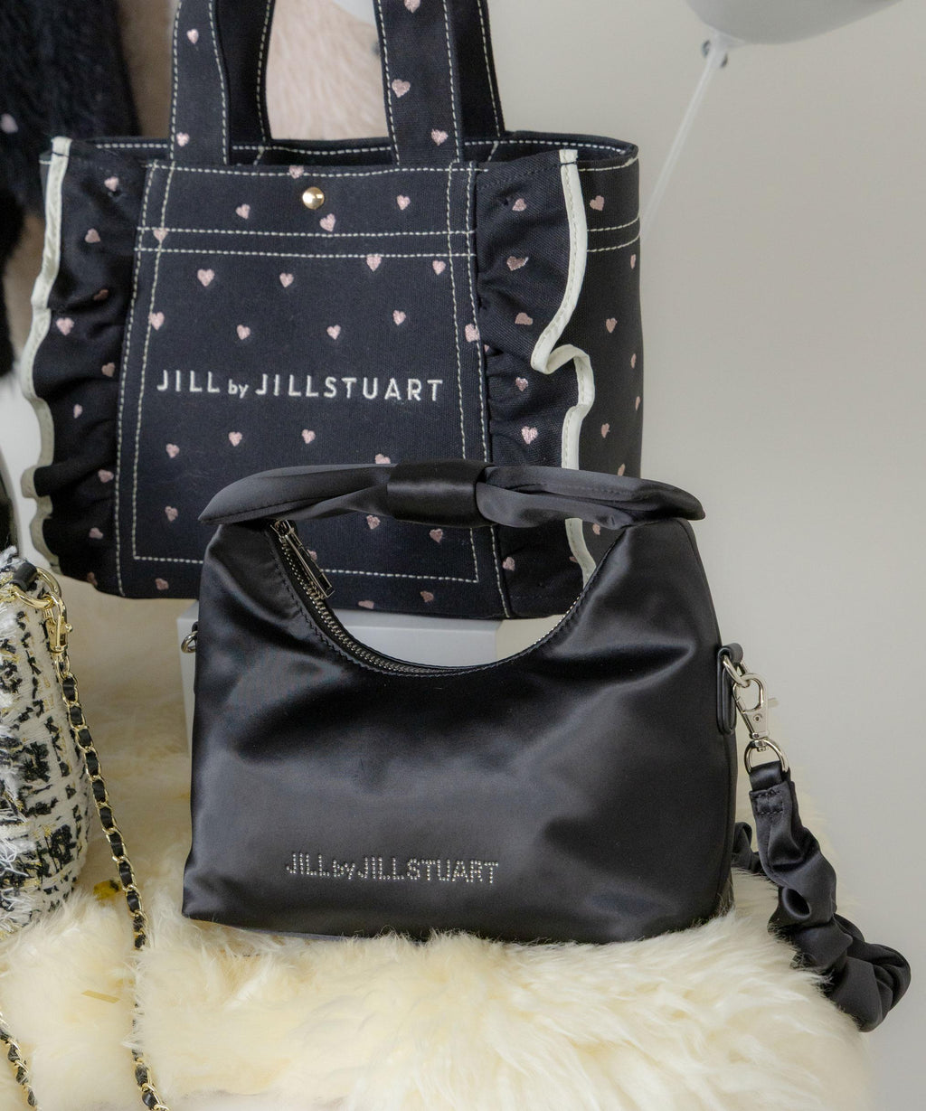 「サテン素材がリッチなリボンハンドルバッグ」艶やかなサテン素材を使ったシンプルで洗練されたデザインは、リボンハンドルで甘さをプラス。芯を貼り合わせることでくたっとならず自立し、カジュアル過ぎないのでデイリーからオケージョンシーンまで活躍します。くしゅくしゅっとしたショルダーは取り外しが出来、ハンドバッグとしても使える2WAY仕様。開口部はファスナーで大きく開き、お財布やスマートフォンが取り出しやすいです。ピンクの裏地とハート型のネームがついたスペシャル仕様です。※撮影時照明の関係により、色味が違って見える場合がございます。