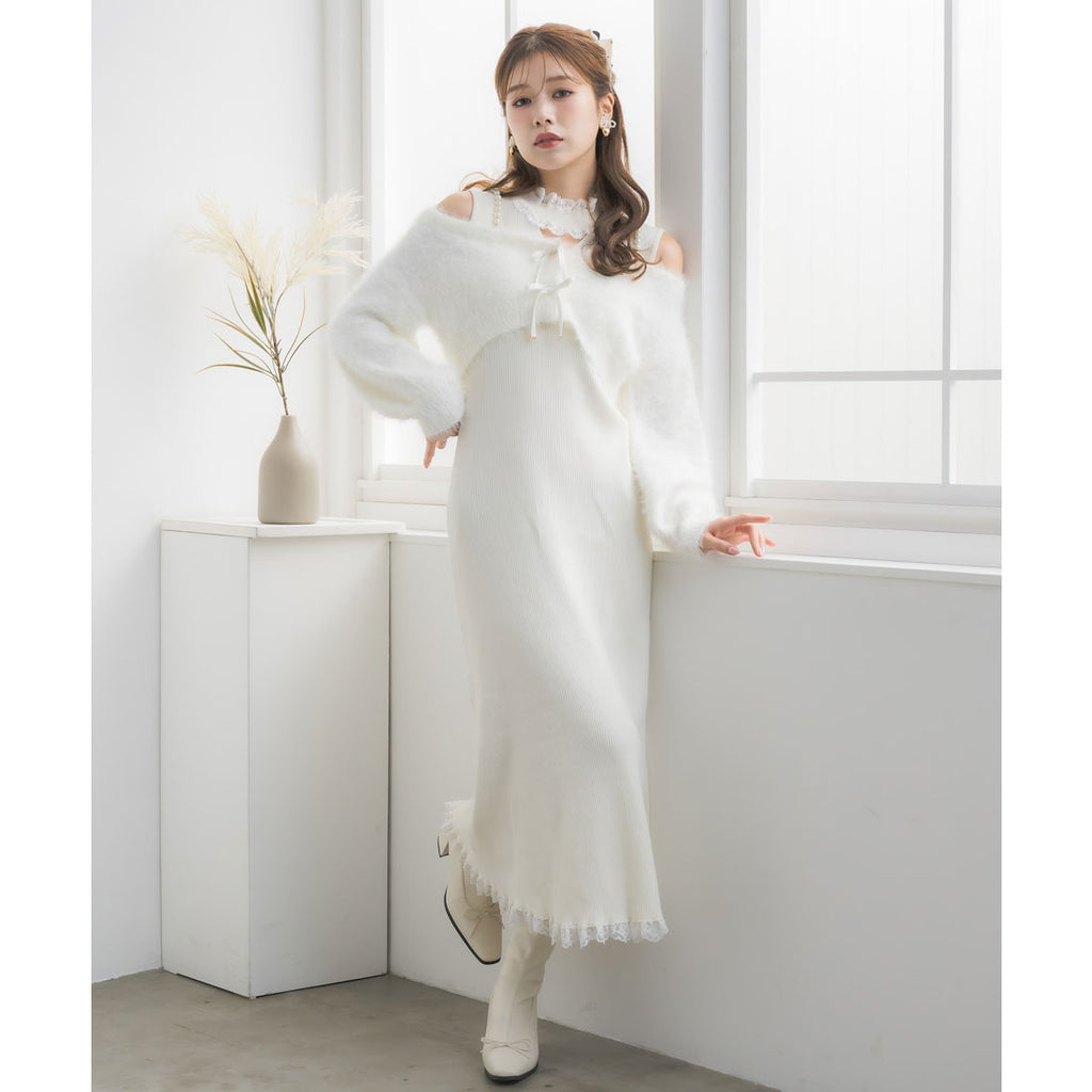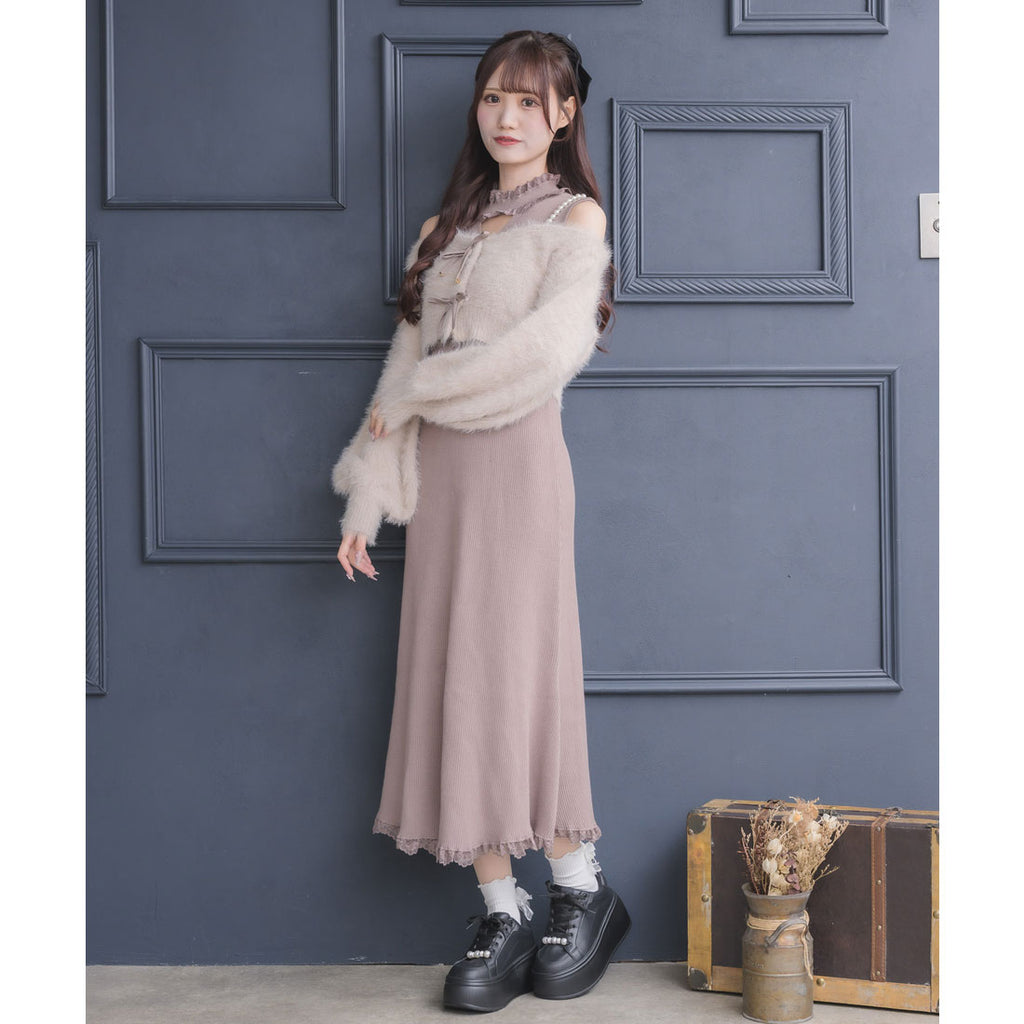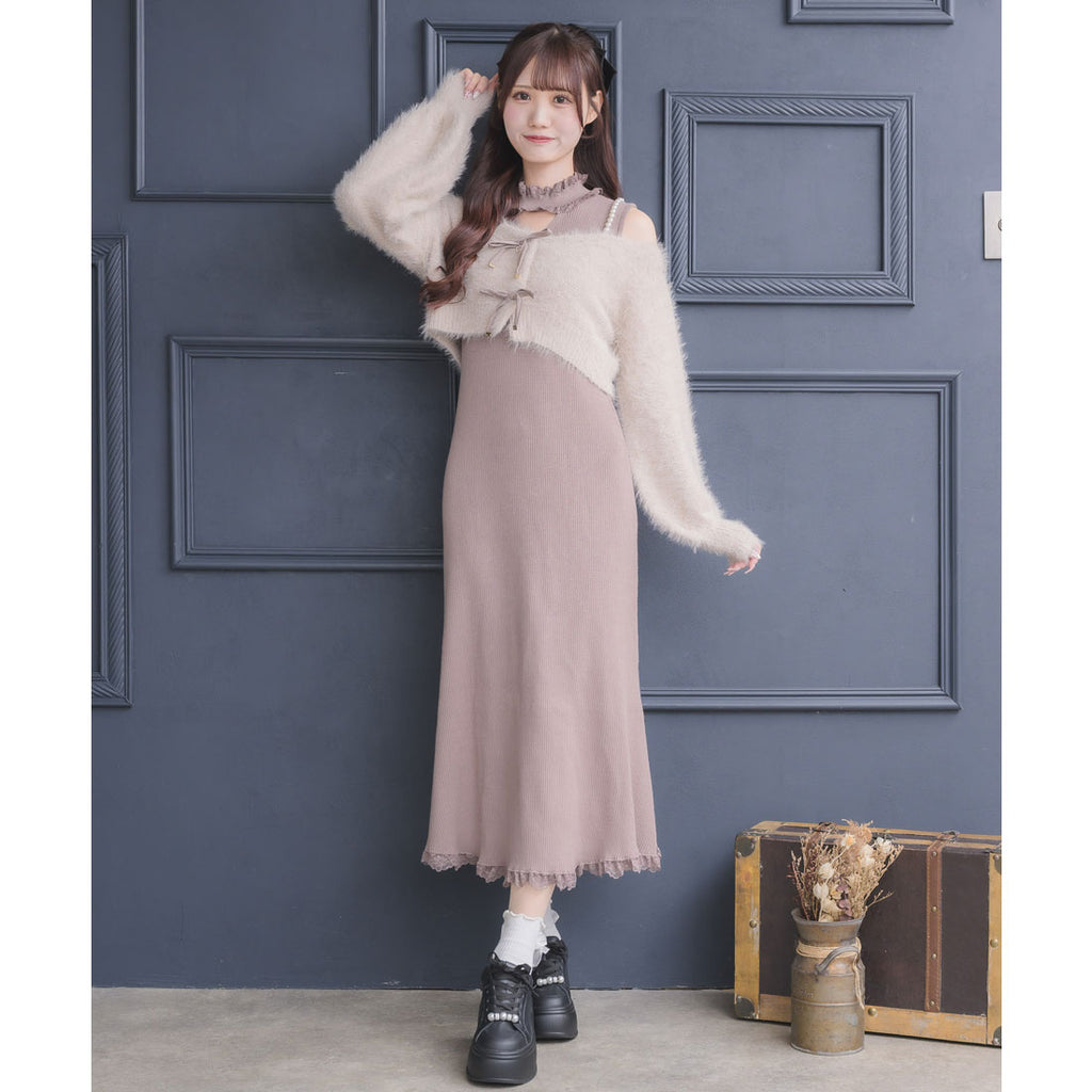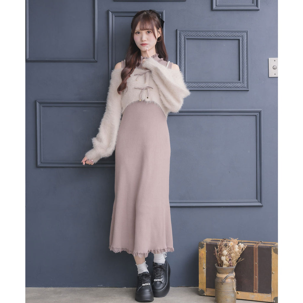 素材 | 素材:【カーデ】本体:_ナイロン75%、アクリル25% _別地_ポリエステル100%【ワンピース】本体:_レーヨン75%、ポリエステル25% _レース_ナイロン90%、ポリウレタン10% |