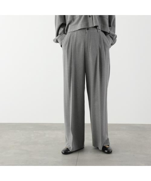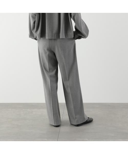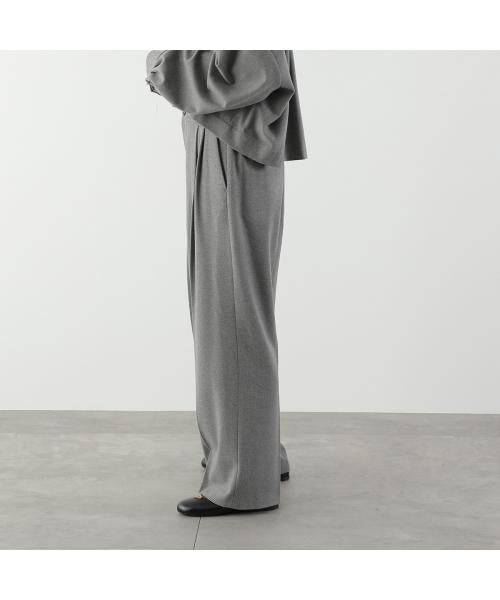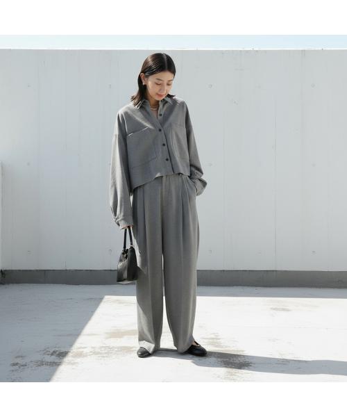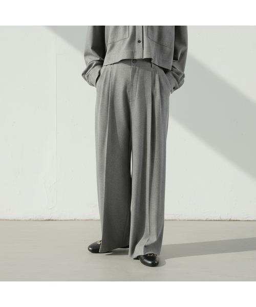 柔らかなウール調の素材を使用したワイドタックパンツ。
