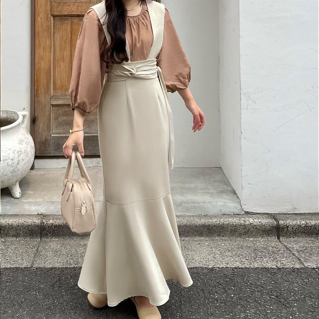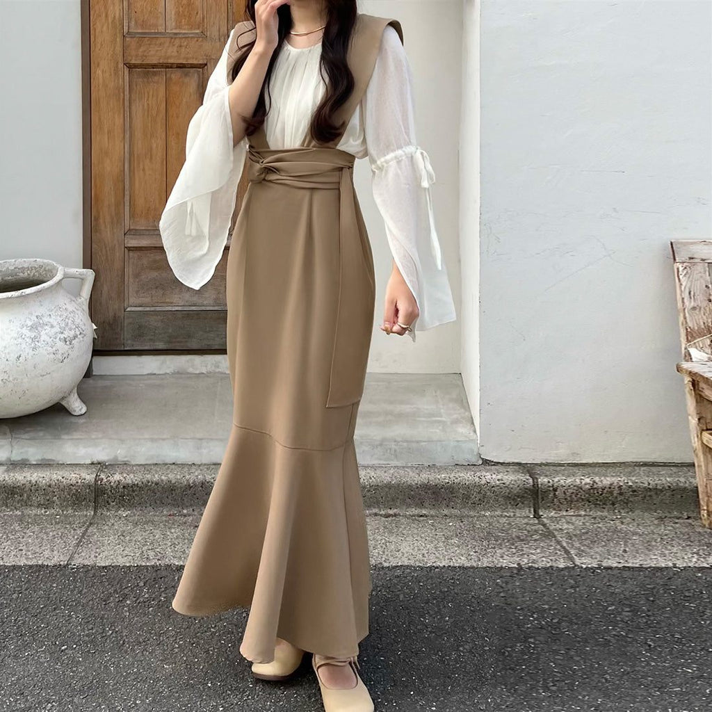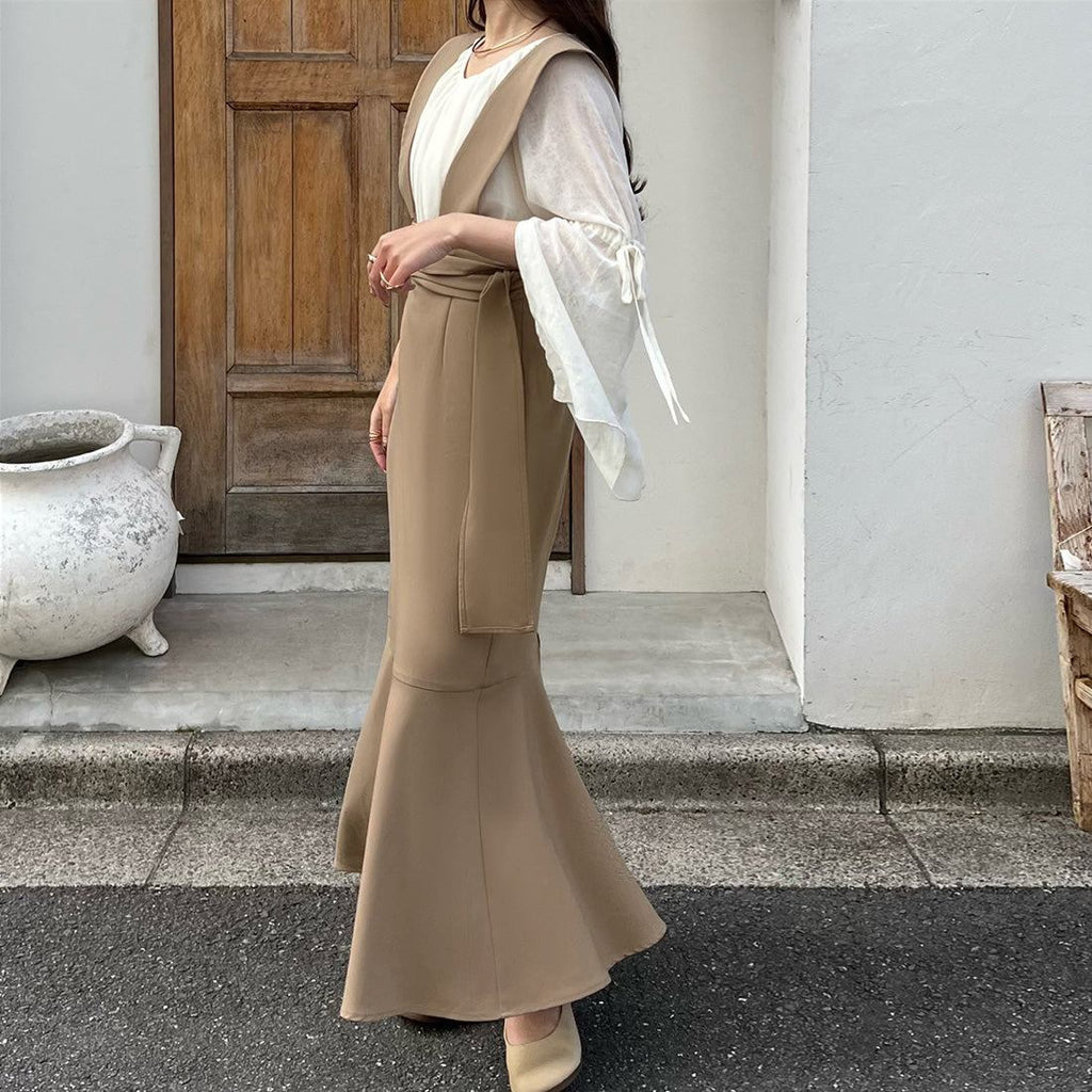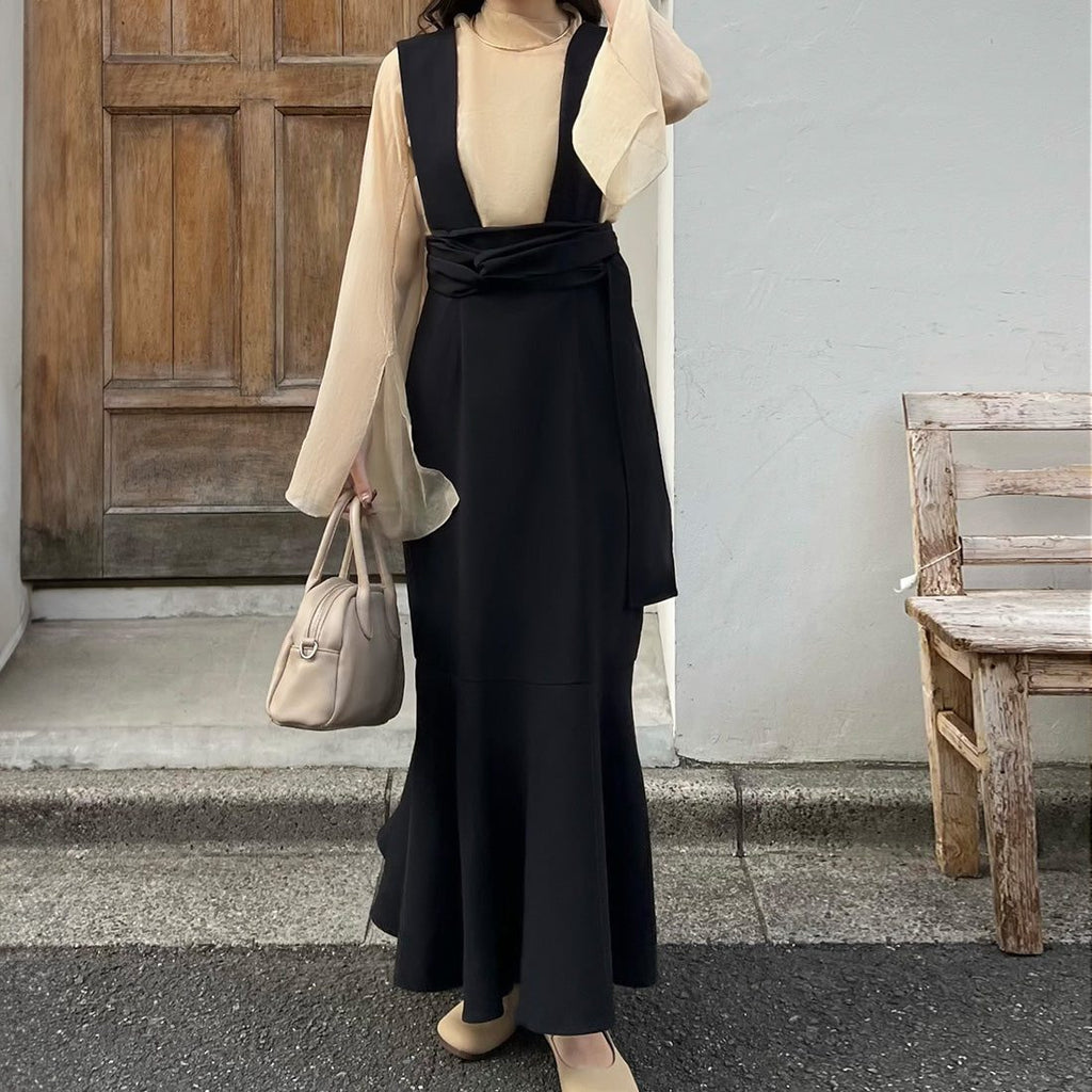 ジュノア JUNOAH ツイストリボンサスペンダーマーメイドスカート
